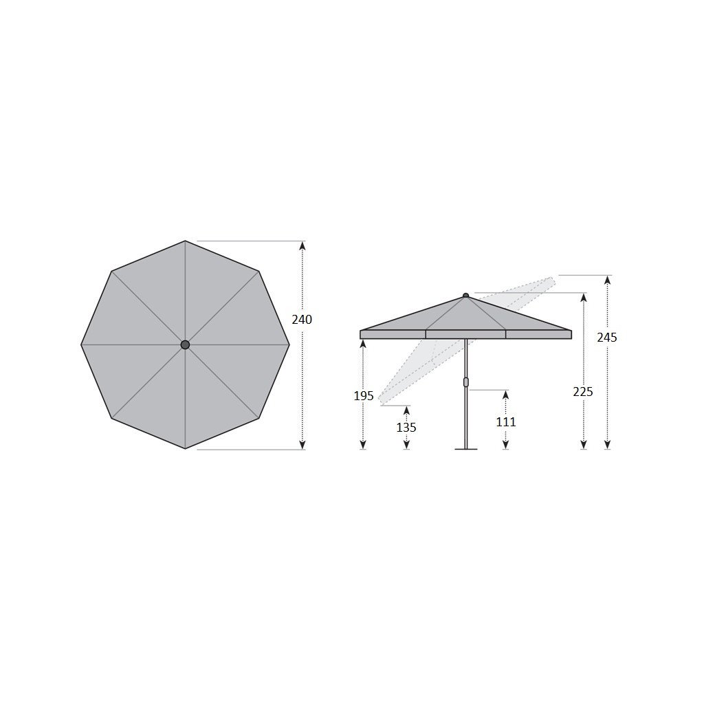 naklápěcí středový slunečník, 240 cm|