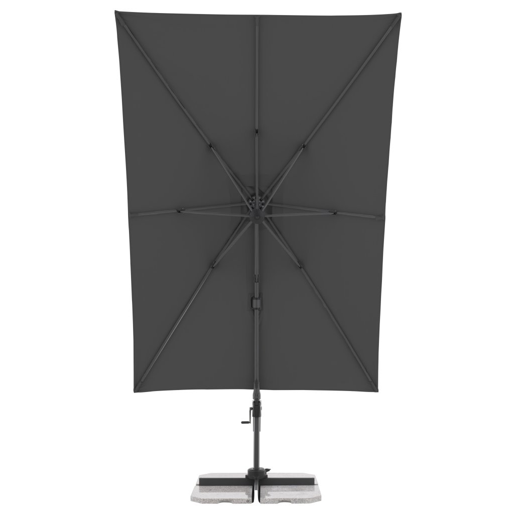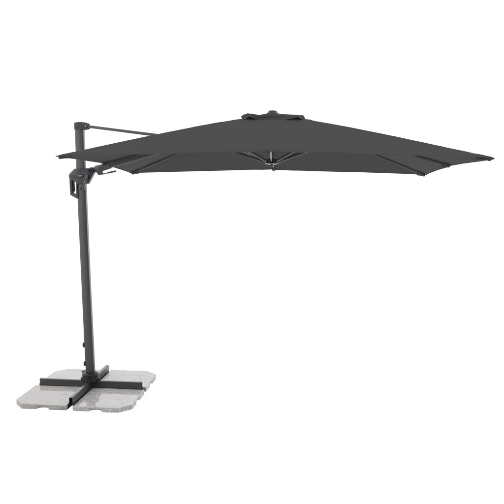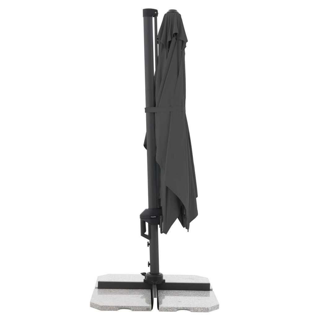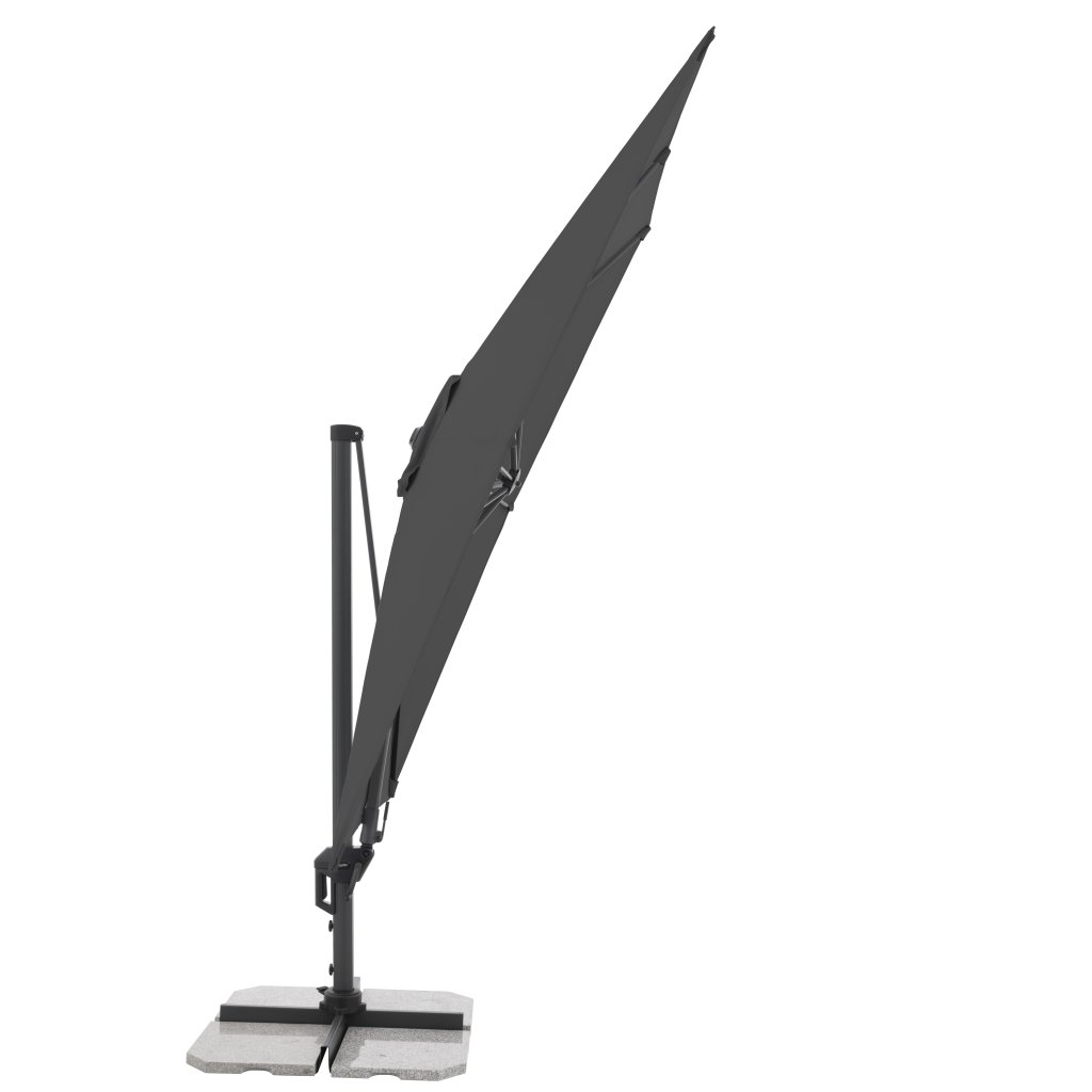 Moderní slunečník s hliníkovou konstrukcí v antracitové barvě je ideální na balkón či terasu. Snadné a pohodlné otevření a zavření slunečníku díky kličkovému mechanismu. Dá se přizpůsobit pohybu slunce během dne, otáčí se o 360°, naklápí se axiálně na obě strany a může být nastaven pod úhlem dozadu a tak se optimálně přizpůsobuje pohybu slunce. Potah je vyroben ze 100% PET recyklované polyesterové tkaniny a má UV ochranu 50+. Touto novou kolekcí ""GREEN EDITION"" následujeme trend udržitelnosti materiálů a výrobků.
