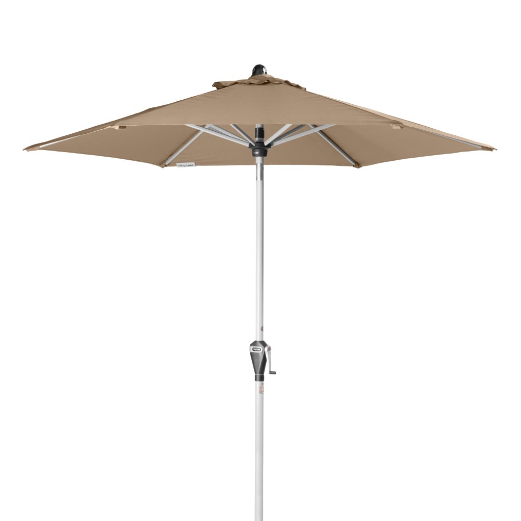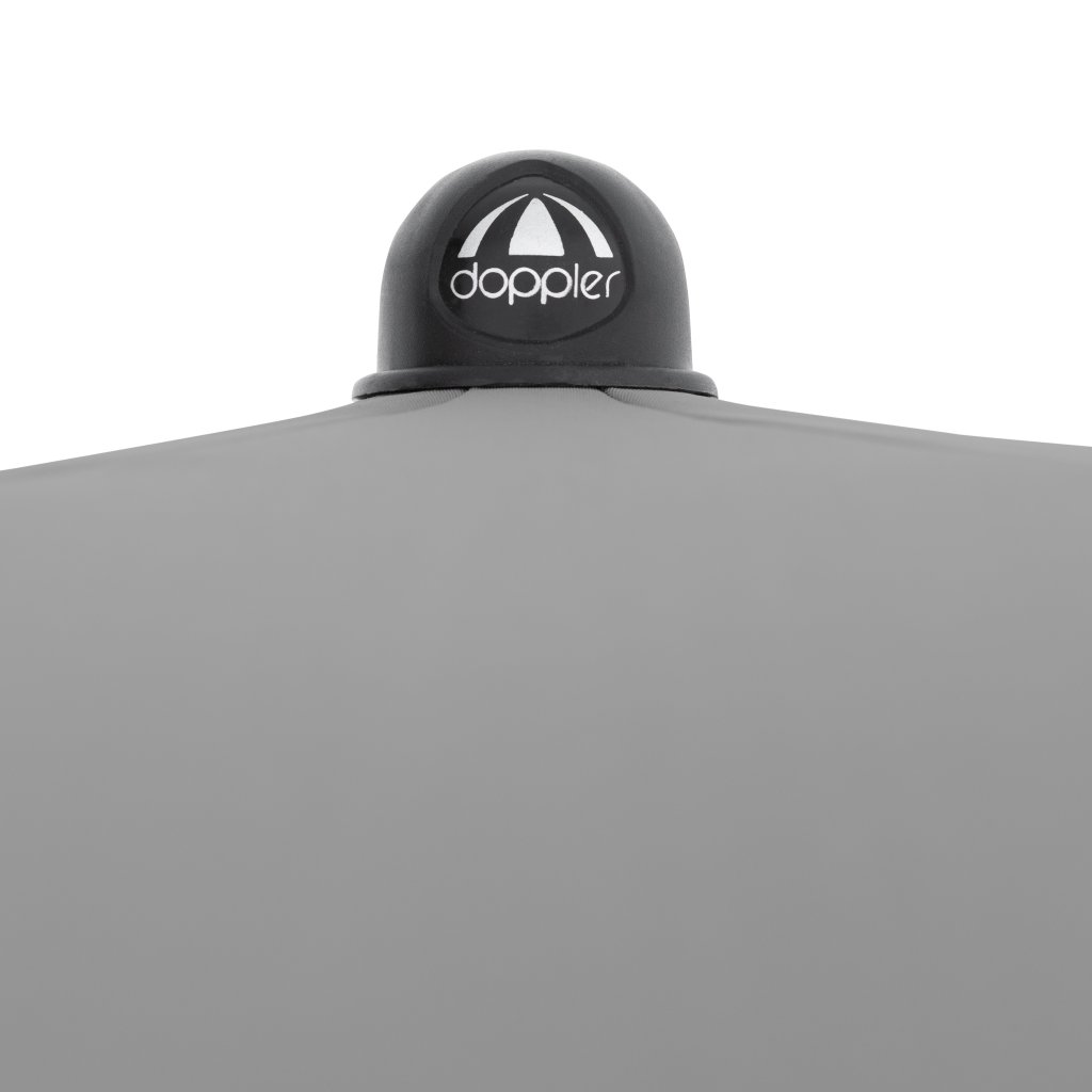 Slunečník má stabilní hliníkovou konstrukci, která je vybavená klikou pro snadné otevírání a zavírání. Komfortní funkce automatického naklápění umožňuje automatické naklopení střechy pouhým otočením kliky. Slunečník je možné výškově nastavit o 15 cm. Potah slunečníku je vyroben ze 100% polyesterové tkaniny odolné proti povětrnostním vlivům s dobrou světelnou stálostí a dobrou UV ochranou 50+ SPF. Díky vzduchovému ventilu ve střeše se pod slunečníkem nekumuluje horký letní vzduch.