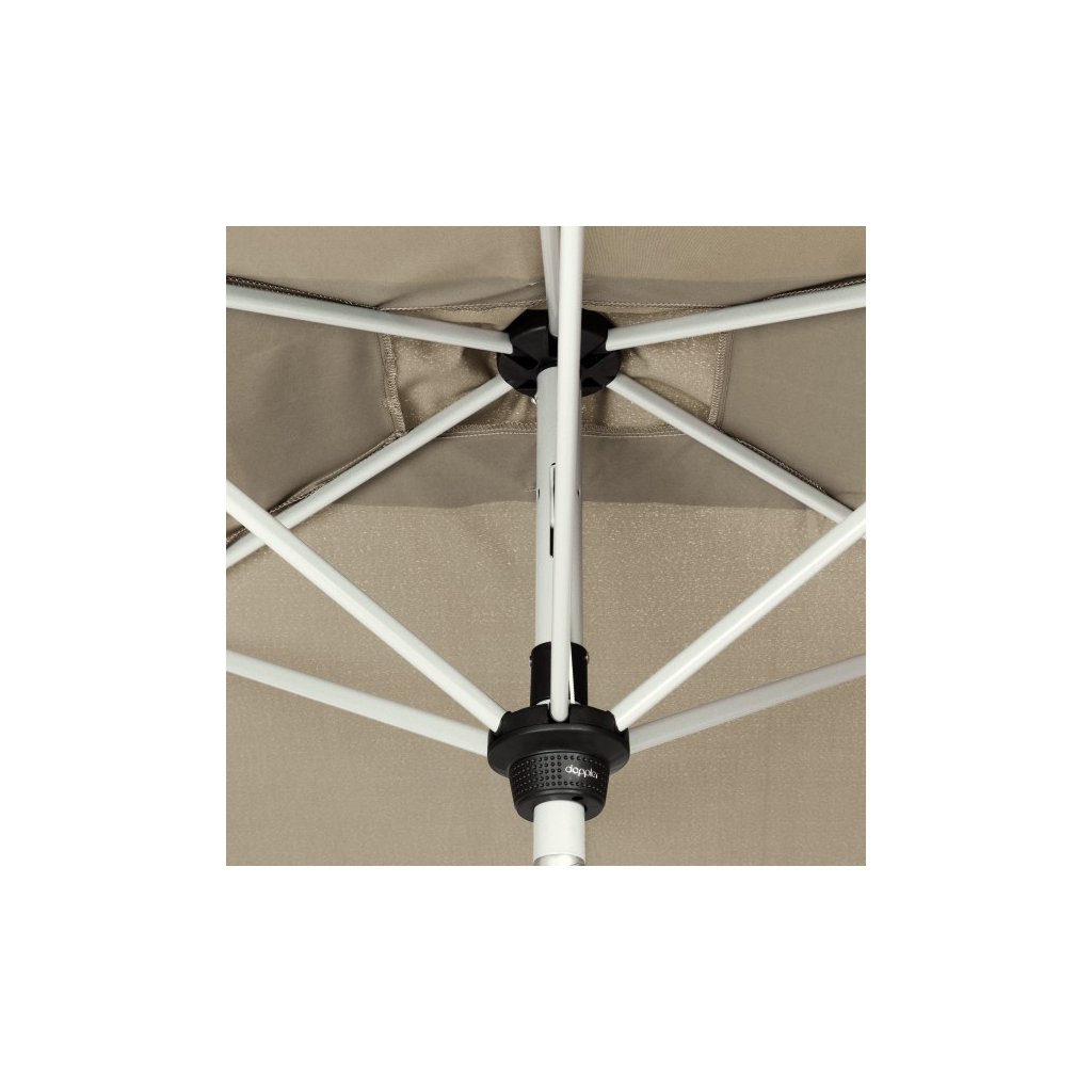 Komfortní funkce automatického naklápění umožňuje automatické naklopení střechy pouhým otočením kliky. Potah slunečníku je vyroben z polyesterové tkaniny odolné proti povětrnostním vlivům s dobrou světelnou stálostí a dobrou UV ochranou 50+.