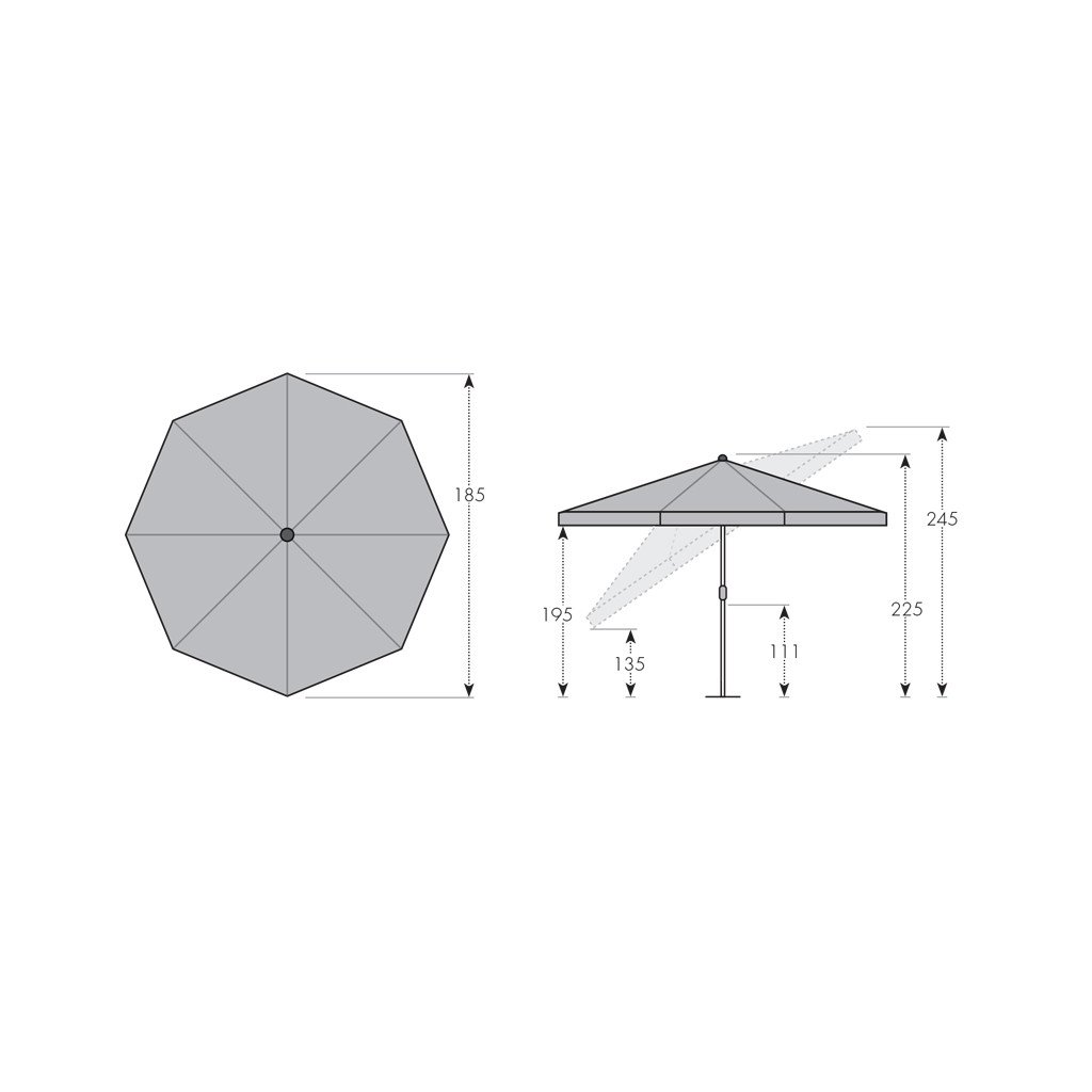 Tento stabilní slunečník je ideálním společníkem na pláž, k rybníku nebo bazénu. Stabilní ramena z U-profilů a rám slunečníku je vyroben z oceli ošetřen práškovou barvou. Navíc má možnost dvoustranného naklápění. Potah je vyroben z 100% polyesterové tkaniny odolné povětrnostním vlivům s dobrou UV ochranou 50+.