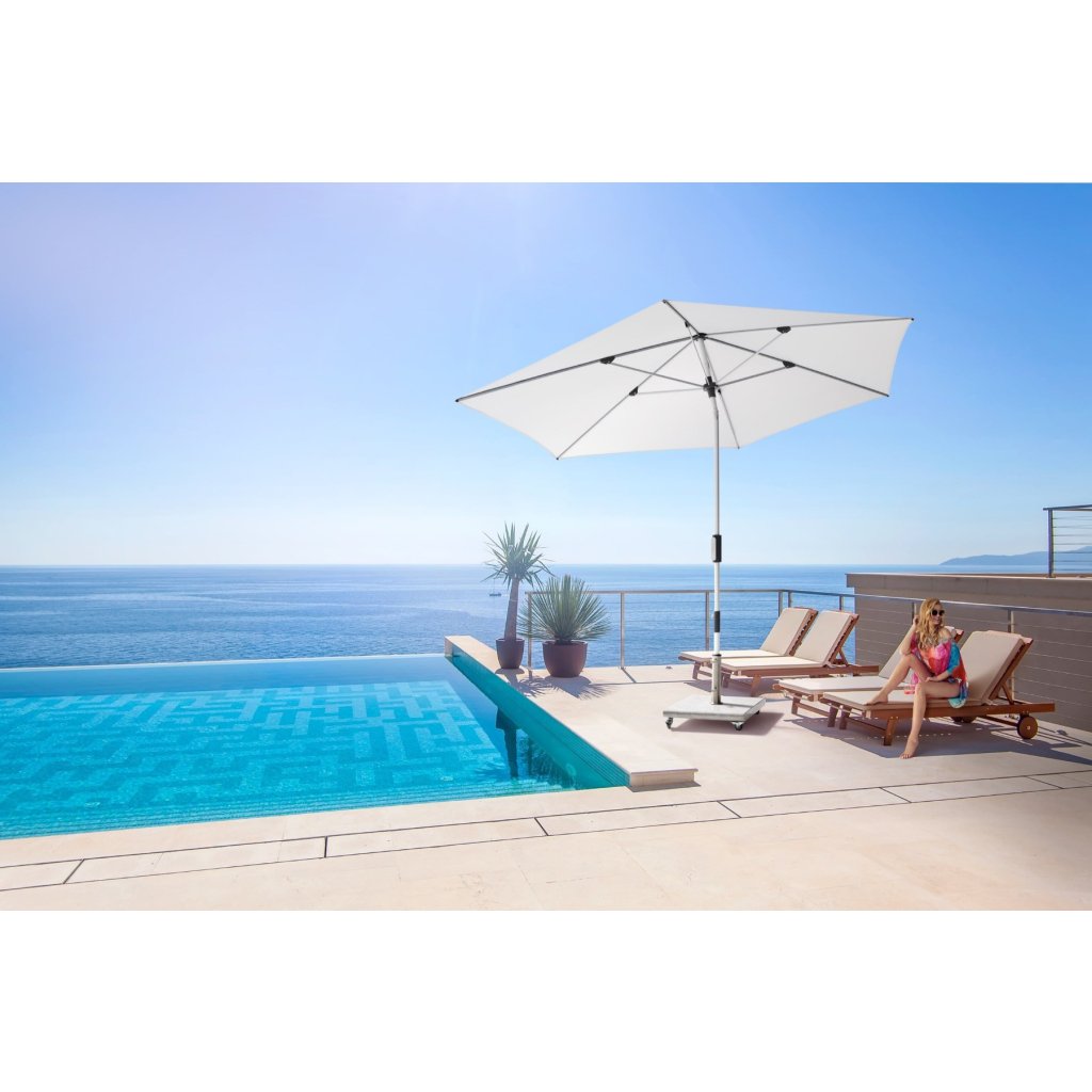 Luxusní zahradní slunečník od prémiové značky Knirps je výškově nastavitelný až o 30 cm a vybavený klikovým mechanismem umožňujícím snadné naklápění. Má lehkou a pevnou hliníkovou konstrukci a kvalitní potah s vysokou ochranou před UV zářením SPF 80.