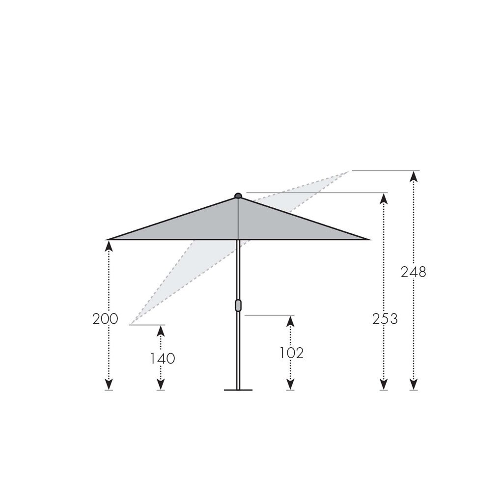 - celková výška otevřeného slunečníku: cca 253/248 cm