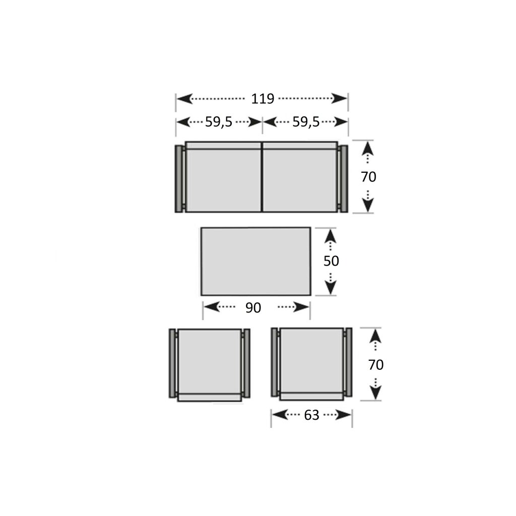 - rozměry křesel: 63 x 70 x 68 cm (šířka x hloubka x výška)