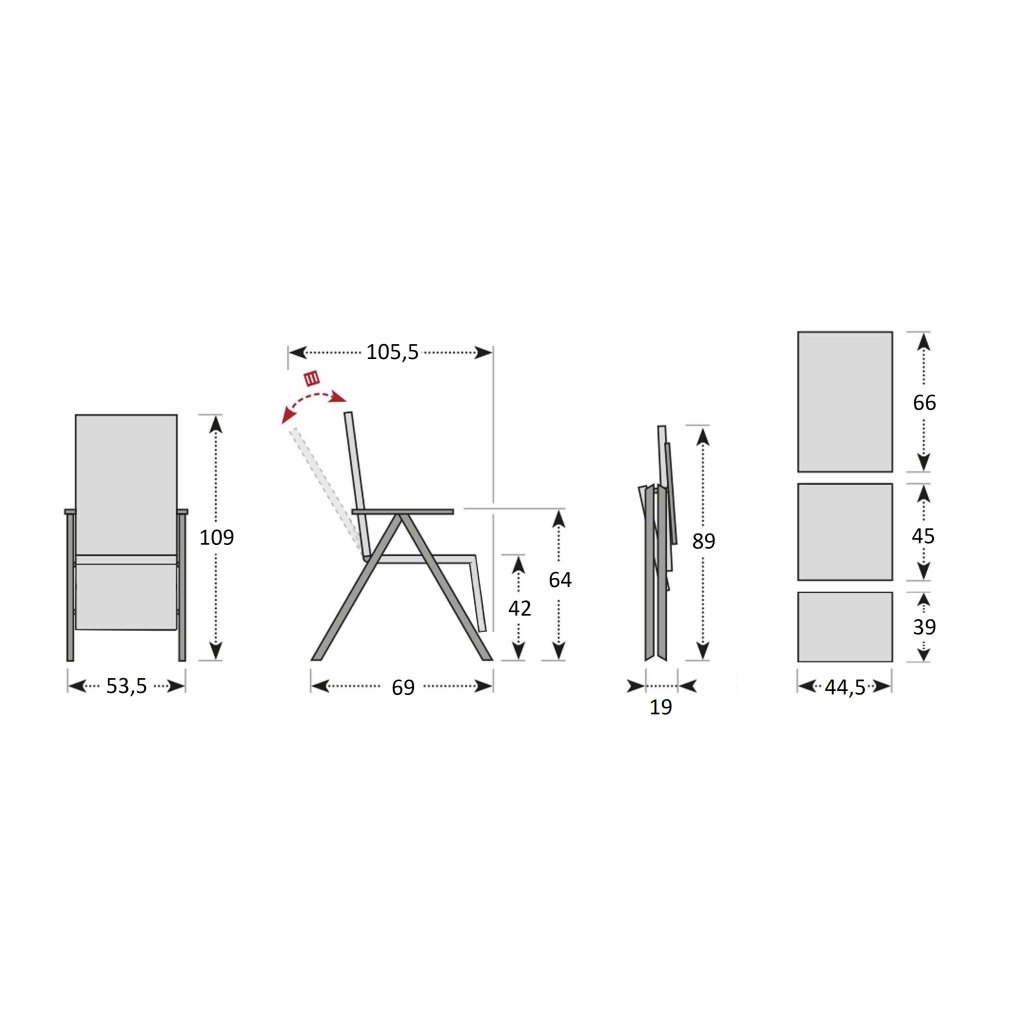 | Vlastnosti a funkce: | Nábytek odolný povětrnostním vlivům, Bezúdržbové, Polohovatelné, rozložitelná židle, křeslo |