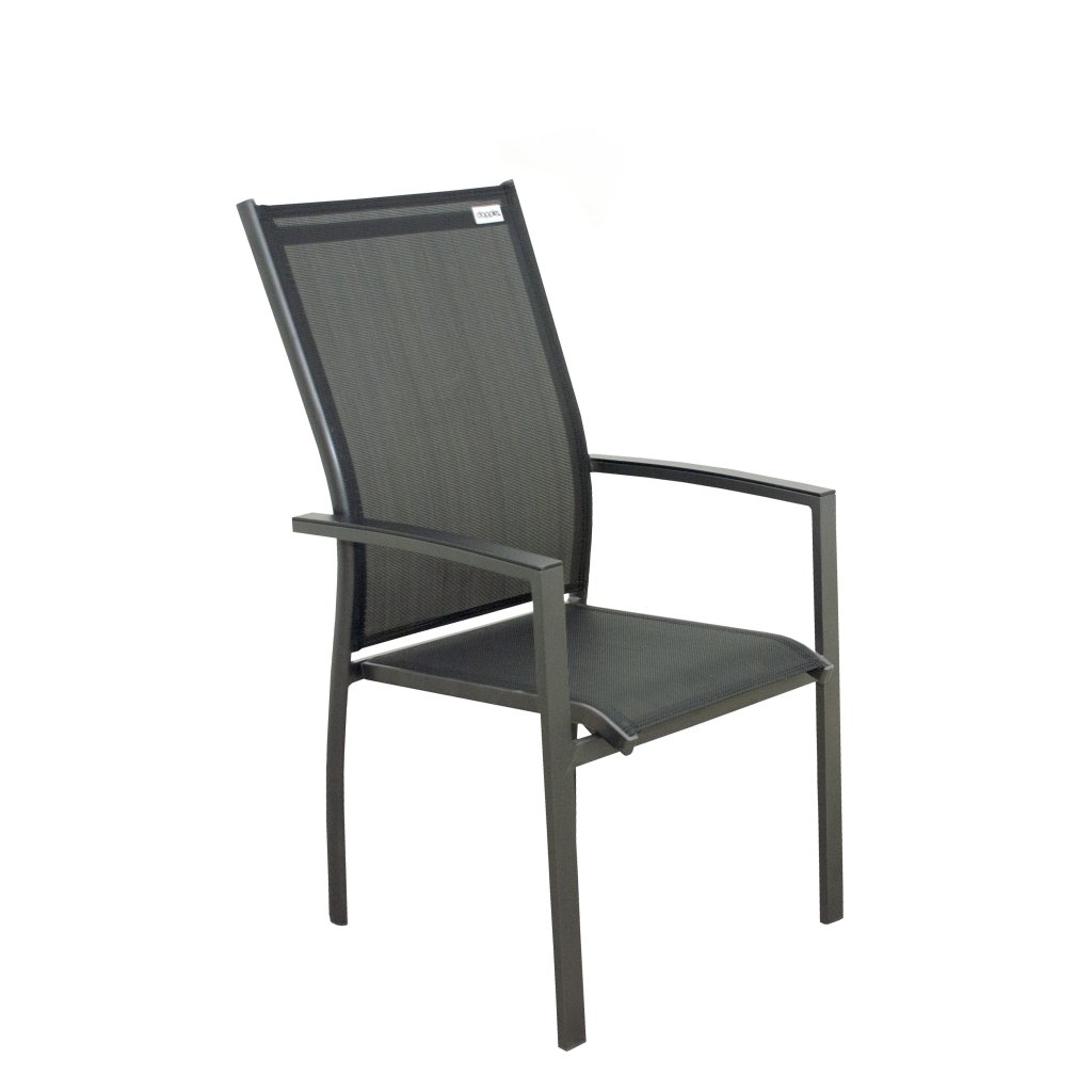 Křesla mají pevnou hliníkovou konstrukci a výplet z černé textilie. Je možné je stohovat na sebe, díky čemuž se dají jednoduše skladovat.