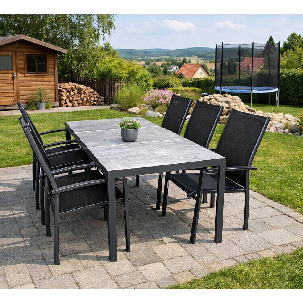 Zahradní sedací sestava BERGAMO EXPERT je praktická sedací souprava s nestárnoucím designem, vhodná pro všechny, kteří hledají bezúdržbový zahradní nábytek a pohodlné venkovní posezení.Sestavu tvoří 6 stohovacích křesel a stůl Bergamo o rozměrech cca 180x90 cm.