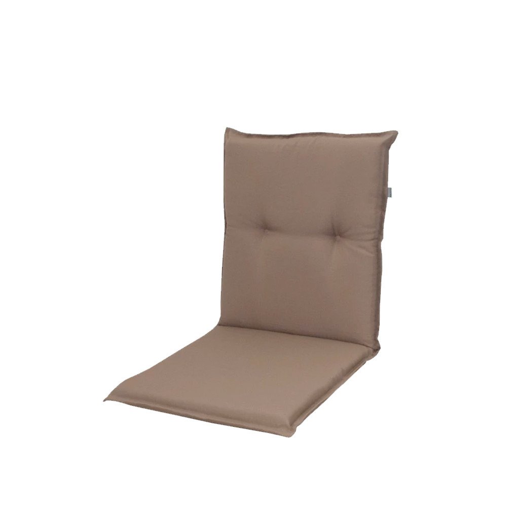 Polstr s nízkou opěrkou na zahradní nábytek řady BRILLANT je v provedení s obšitým lemem, prošitý kroužkově 2x v opěradle. Uchycení je pomocí posuvné spony. Díky sponě si můžete nastavit velikost dle rozměru a druhu židle, spona je pevná a nevytahuje se. Upevnění sedáku je pomocí dvou tkaniček v ohybu polstru. Potah je nesnímatelný.