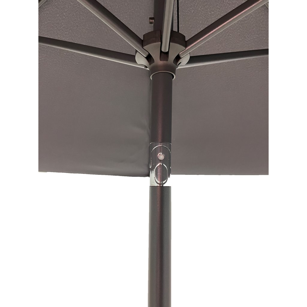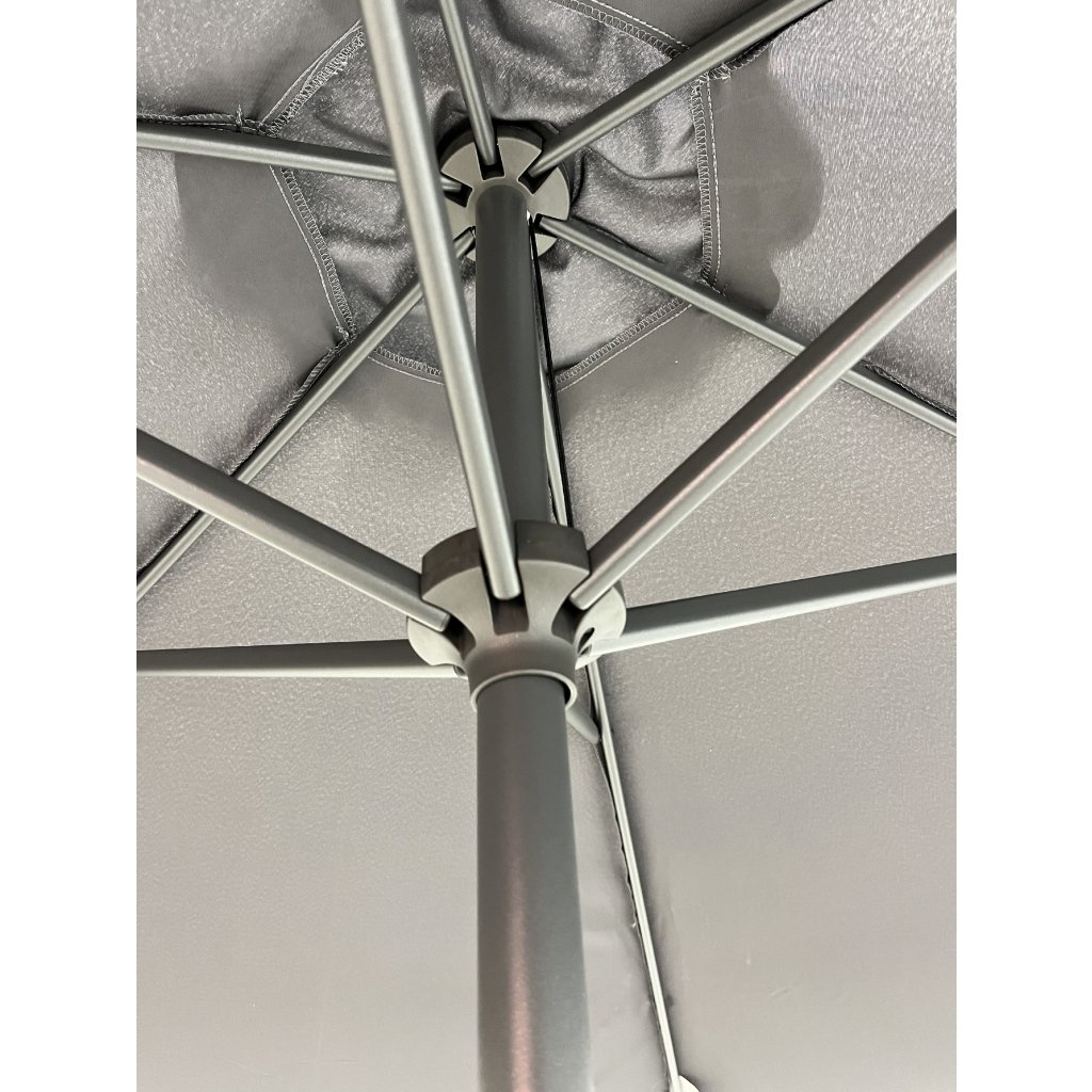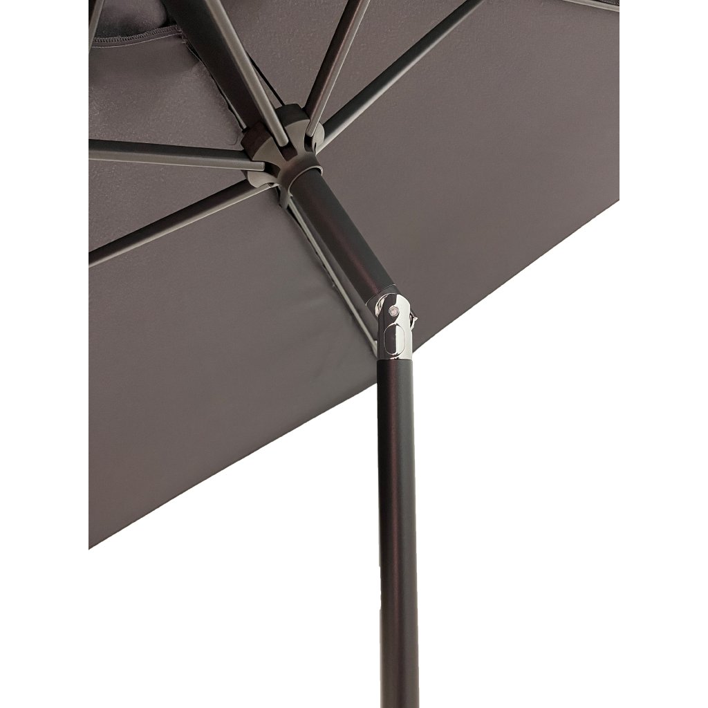 Konstrukce slunečníku je vyrobena z kvalitního hliníku. Snadné a pohodlné otevírání a zavírání slunečníku je zajištěno díky kličkovému mechanismu a naklápěcím kloubem se 3 polohami naklopení. Vodoodpudivý polyesterový potah je snímatelný a je možné ho prát v ruce. Potah je vyroben ze 100% PET recyklované polyesterové tkaniny a má dobrou UV ochranu 80+.