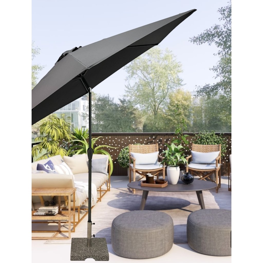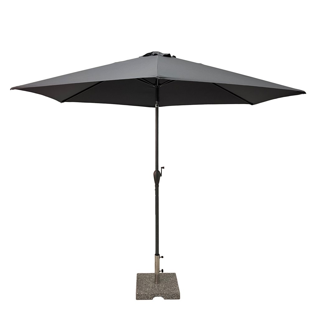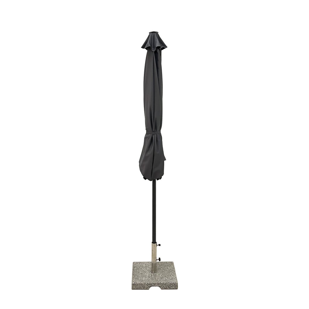 Konstrukce slunečníku je vyrobena z kvalitního hliníku. Snadné a pohodlné otevírání a zavírání slunečníku je zajištěno díky kličkovému mechanismu a naklápěcím kloubem se 3 polohami naklopení. Vodoodpudivý polyesterový potah je snímatelný a je možné ho prát v ruce. Potah je vyroben ze 100% PET recyklované polyesterové tkaniny a má dobrou UV ochranu 80+.