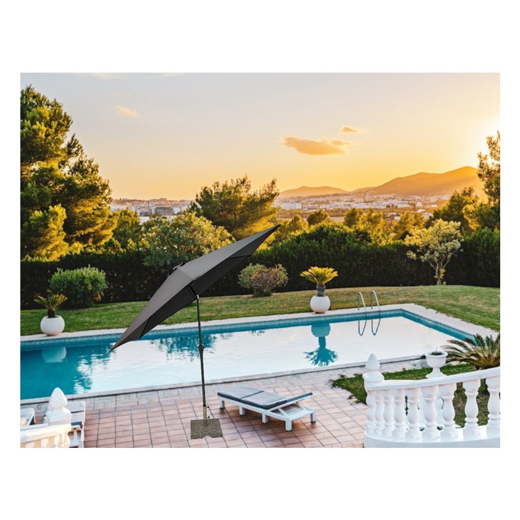 | Vlastnosti a funkce: | Odolný povětrnostním vlivům, Otočný kolem osy, Naklápěcí, Snímatelný/ručně pratelný potah slunečníku, Automatické otevírání klikou |