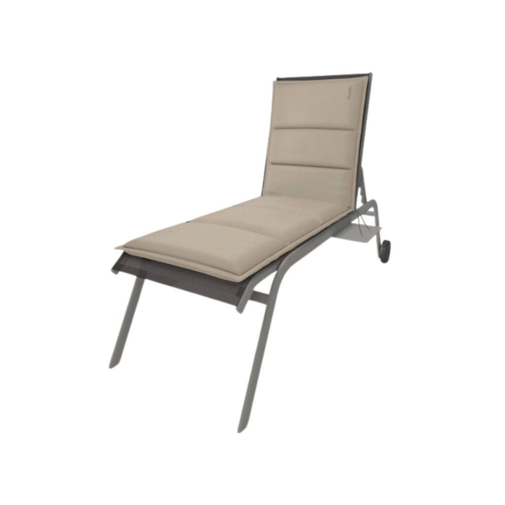 Polstr na zahradní lehátko řady CITY. Elegantní polstr v módním odstínu, zdobený výšivkou Doppler na opěradle. Polstr je v provedení s obšitým lemem, prošitý 1x v sedáku, 2x v opěradle. Uchycení je pomocí posuvné spony. Díky sponě si můžete nastavit velikost dle rozměru a druhu židle, spona je pevná a nevytahuje se. Upevnění sedáku je pomocí dvou tkaniček v ohybu polstru. Síla polstru je optimální pro všechny druhy židlí. Provedení je vhodné i do náročných podmínek kaváren, zahrádek a restaurací. Potah je nesnímatelný.