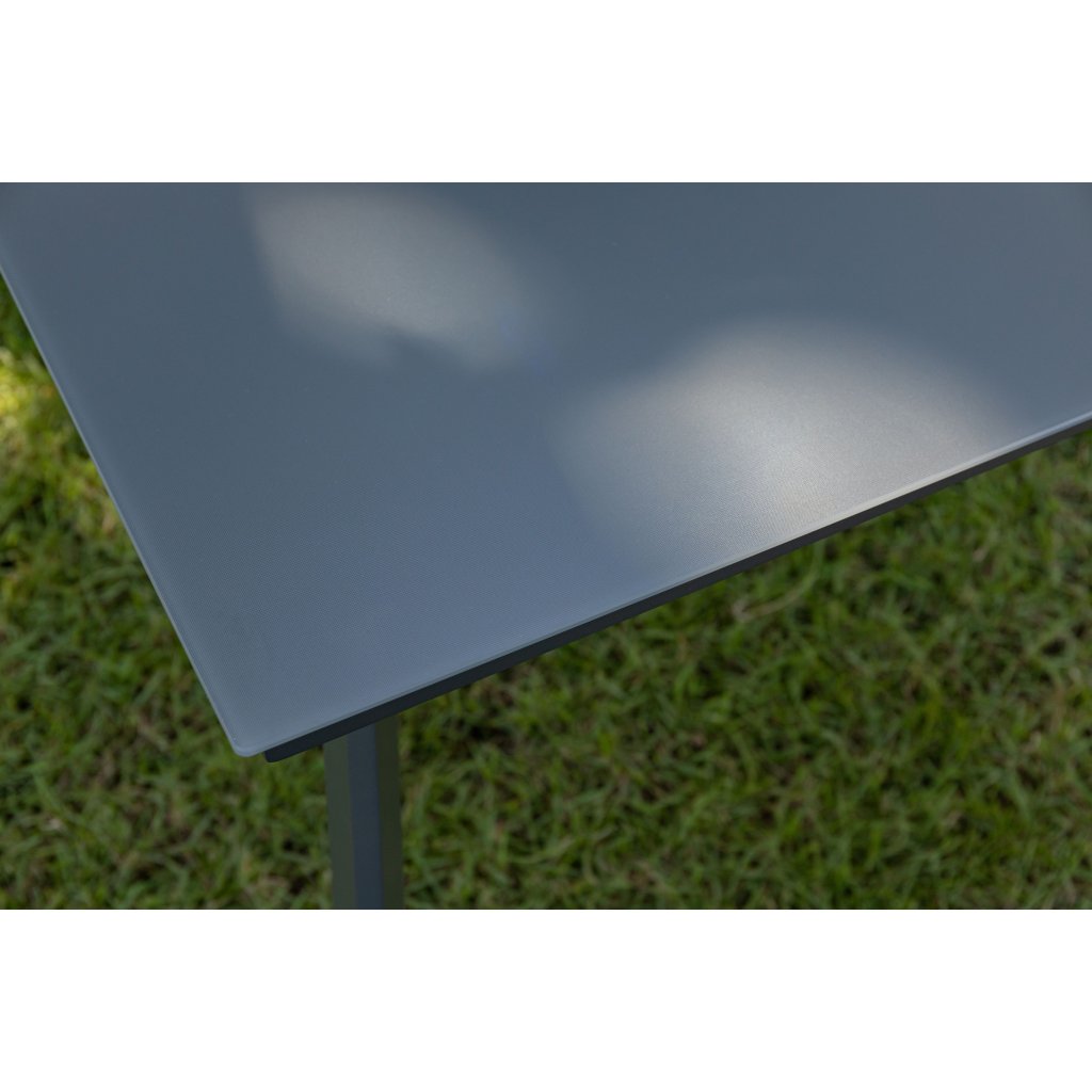 Hliníková konstrukce s práškovým nástřikem v antracitové barvě je lehká, pevná a bezúdržbová – ideální pro dlouhodobé venkovní používání.