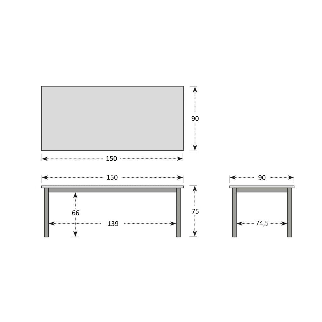 - rozměry: 150 x 90 x 75 cm (šířka x hloubka x výška)