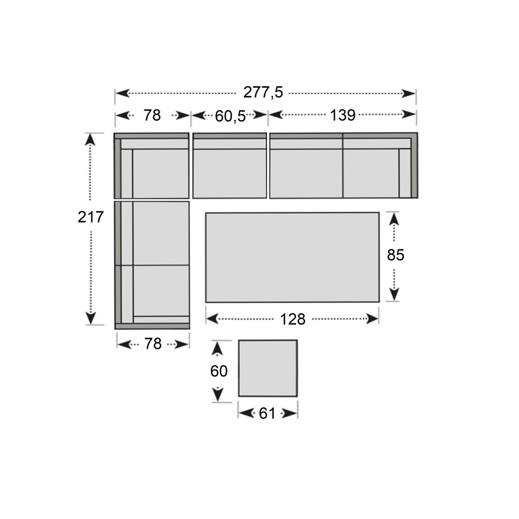 - rozměry rohové pohovky: 217/277,5 x 78 x 71 cm (šířka x hloubka x výška)
