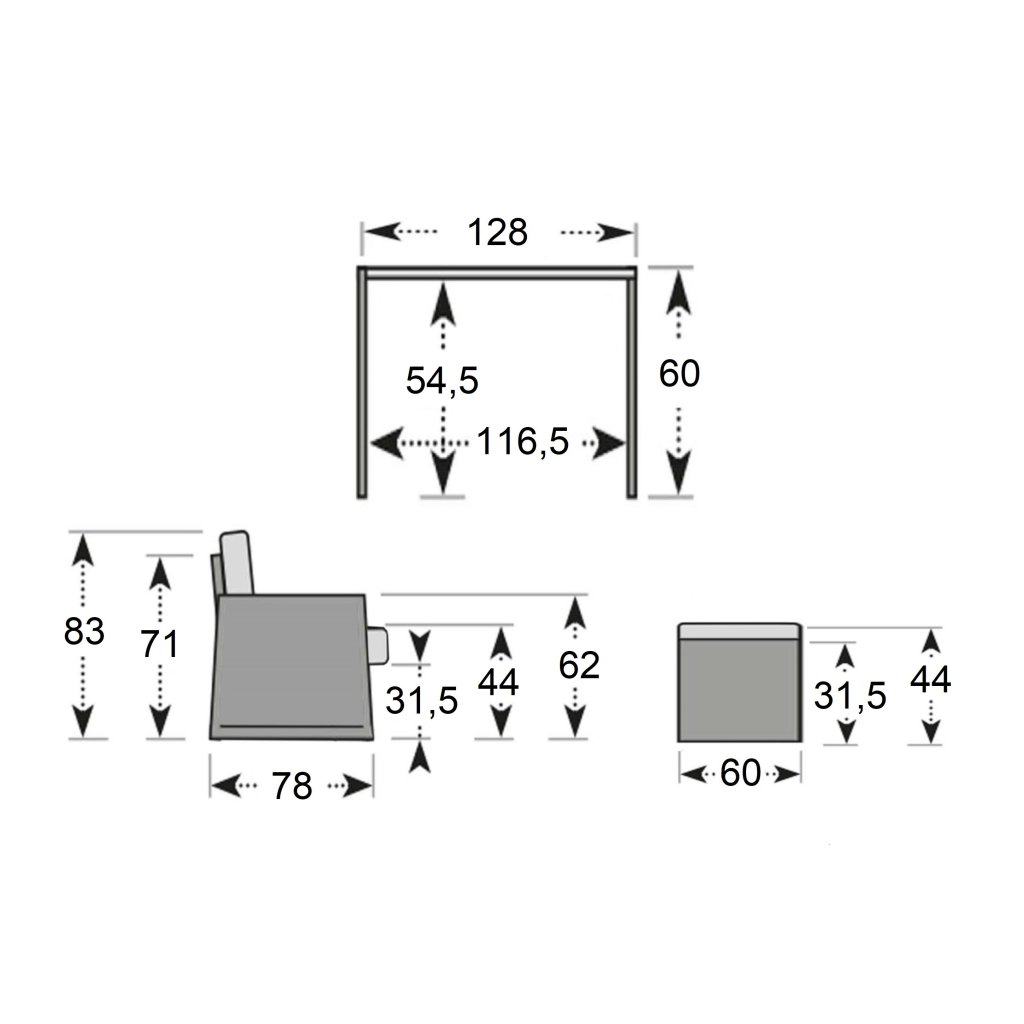 | Obsah setu: | polstr, stůl, křeslo, taburet, sedačka |