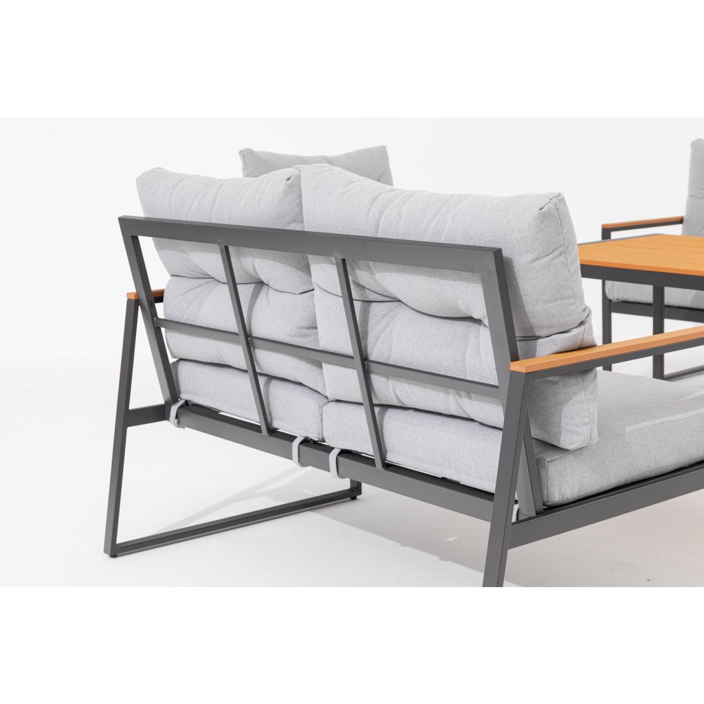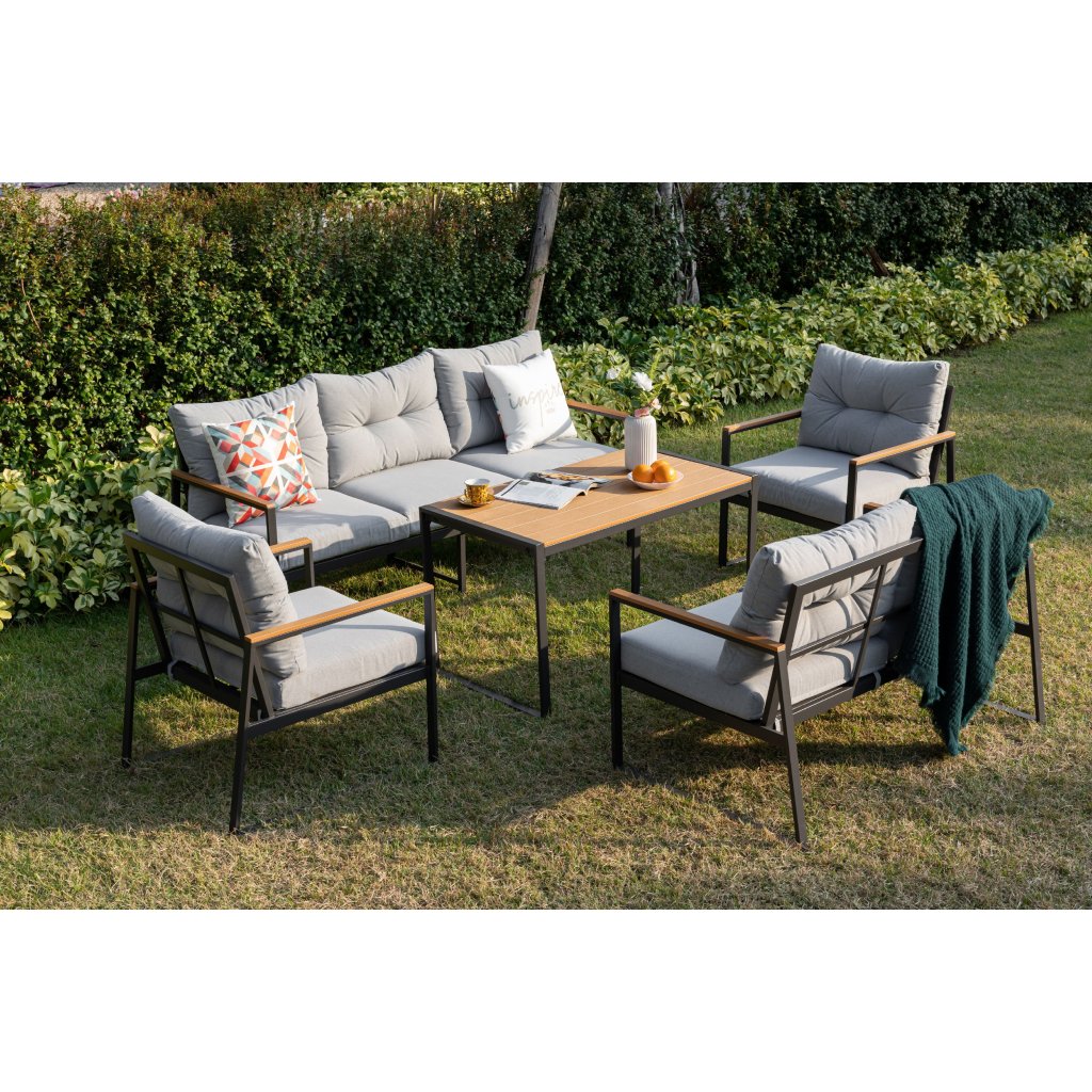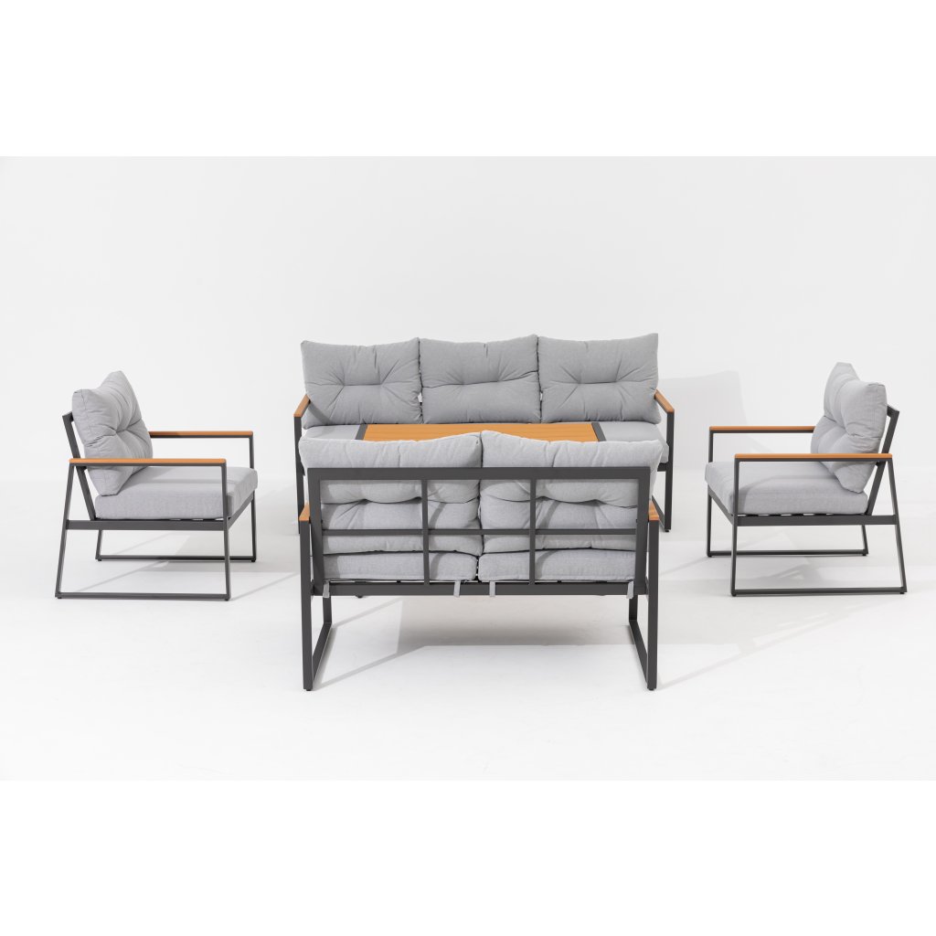 Objevte jedinečný Cortona set – 5-dílnou sedací soupravu, která se stane ozdobou vaší zahrady nebo terasy. S pevným ocelovým rámem v elegantní antracitové barvě a moderními prvky polywoodu je Cortona nejen krásná, ale také odolná a snadno udržovatelná.