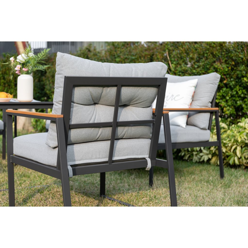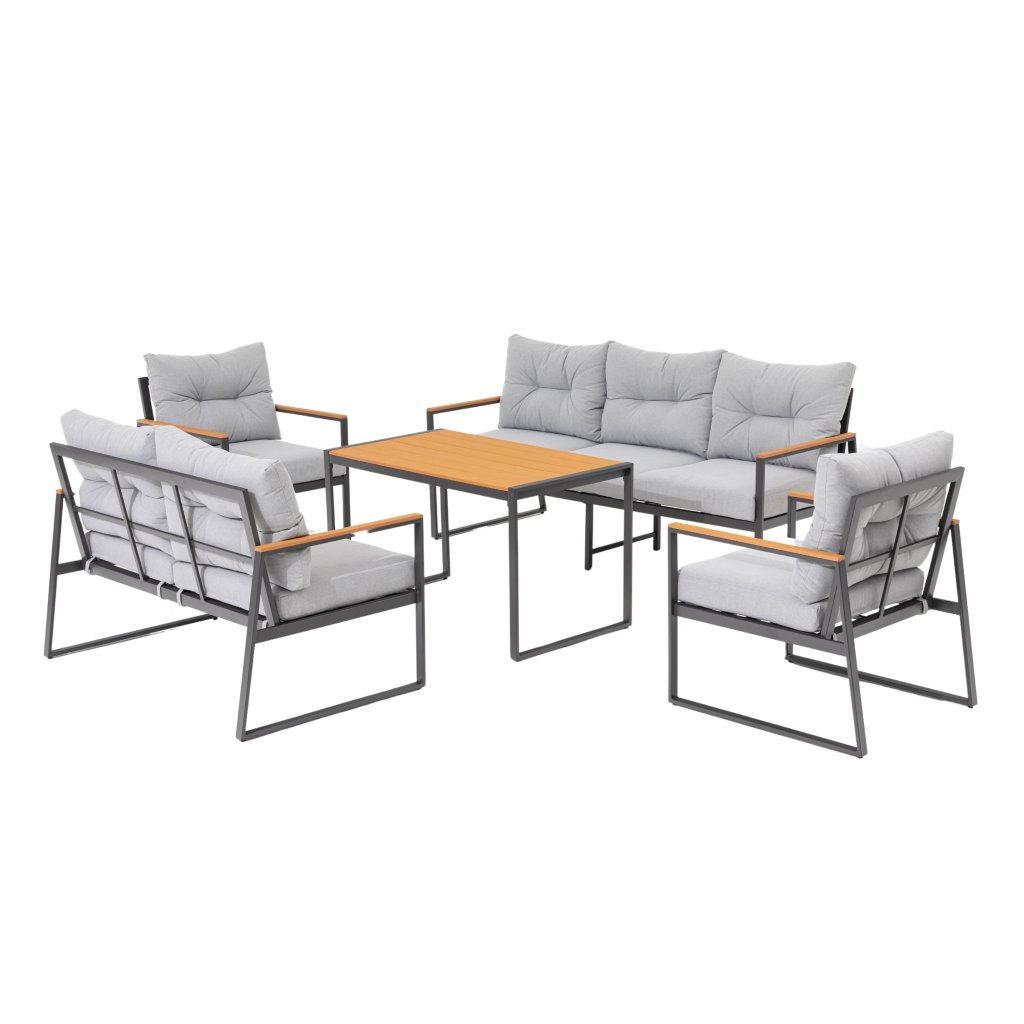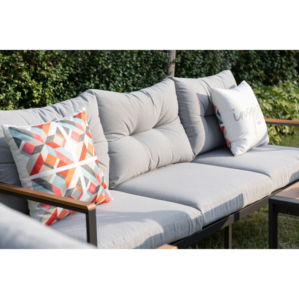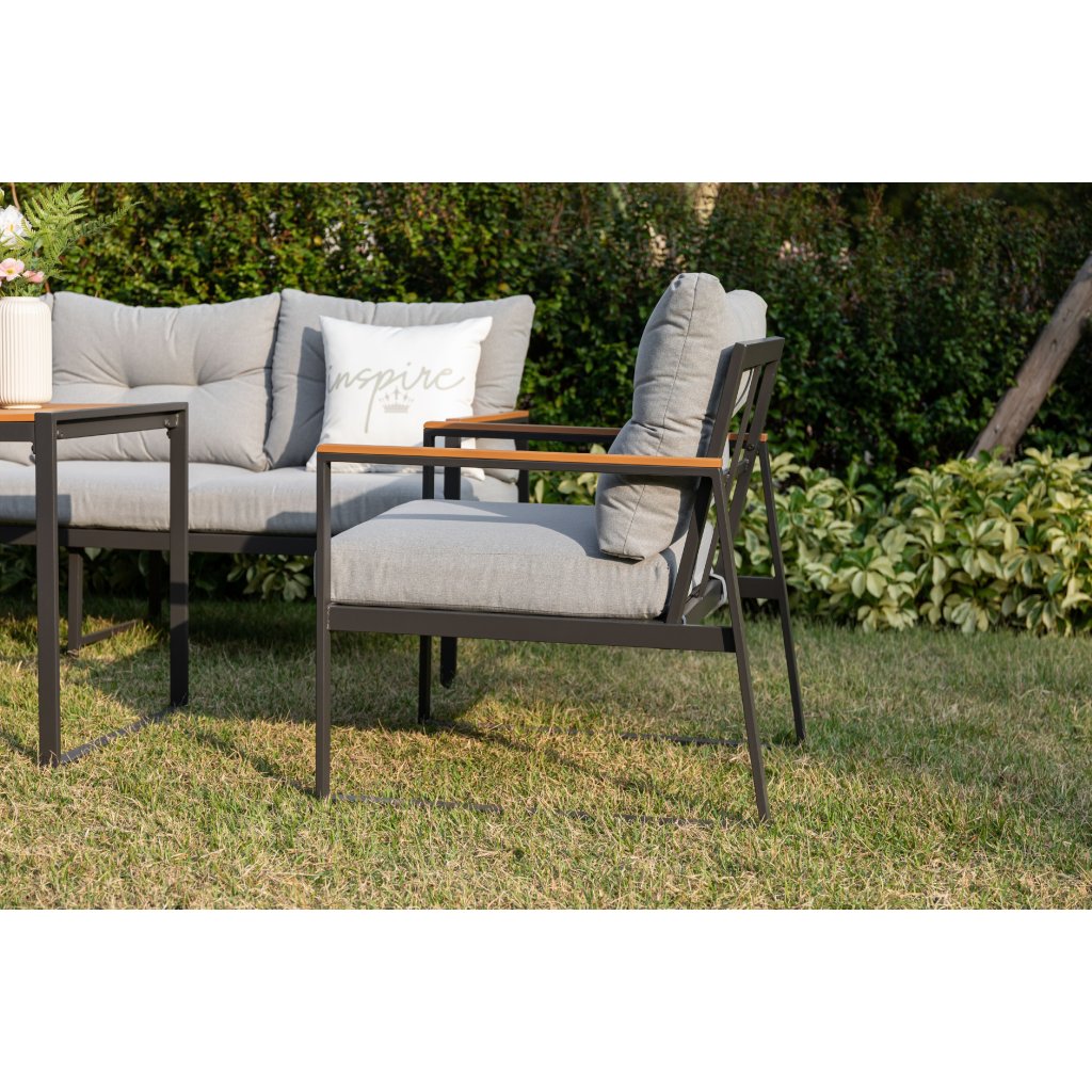 Objevte jedinečný Cortona set – 5-dílnou sedací soupravu, která se stane ozdobou vaší zahrady nebo terasy. S pevným ocelovým rámem v elegantní antracitové barvě a moderními prvky polywoodu je Cortona nejen krásná, ale také odolná a snadno udržovatelná.