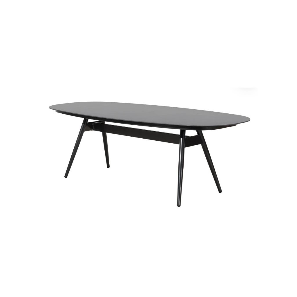 Velký zahradní oválný stůl je moderní, nadčasový zahradní nábytek. Jednoduché a čisté linie stolu jsou vhodné do každého prostředí. Stůl má hliníkovou konstrukci v antracitové barvě s bezúdržbovou sklokeramickou deskou a je díky tomu perfektním doplňkem pro společné trávení času na zahradě.