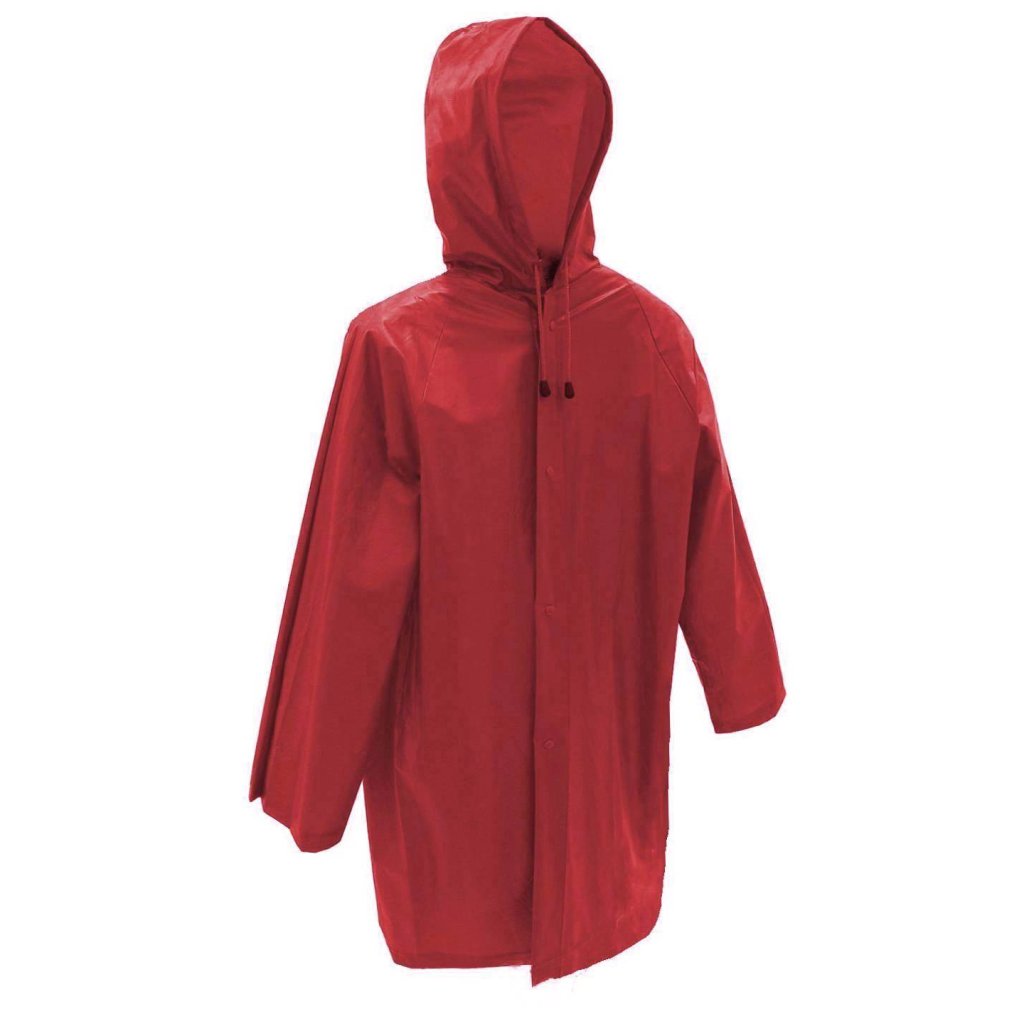 Pláštěnka pro děti červené barvy s kapucí a patentky. Pláštěnka je skladná vhodná na výlety i denní nošení do města i do školy. Pevný odolný materiál oproti ‚‚běžným"" pláštěnkám, jen tak se neprotrhne.