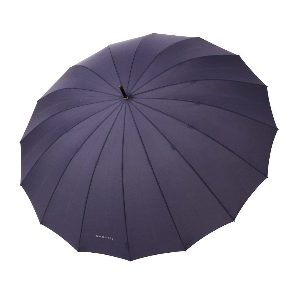 Elegantní pánský holový deštník tmavě modrý od trendy značky Bugatti. Konstrukce ze sklolaminátu a dřeva poslední díl ramene ze sklolaminátu zajišťuje pružnost deštníku ve větru. Veliká střecha. Polyesterový potah je odolný proti změnám vlhkosti a teplot, nesráží se.