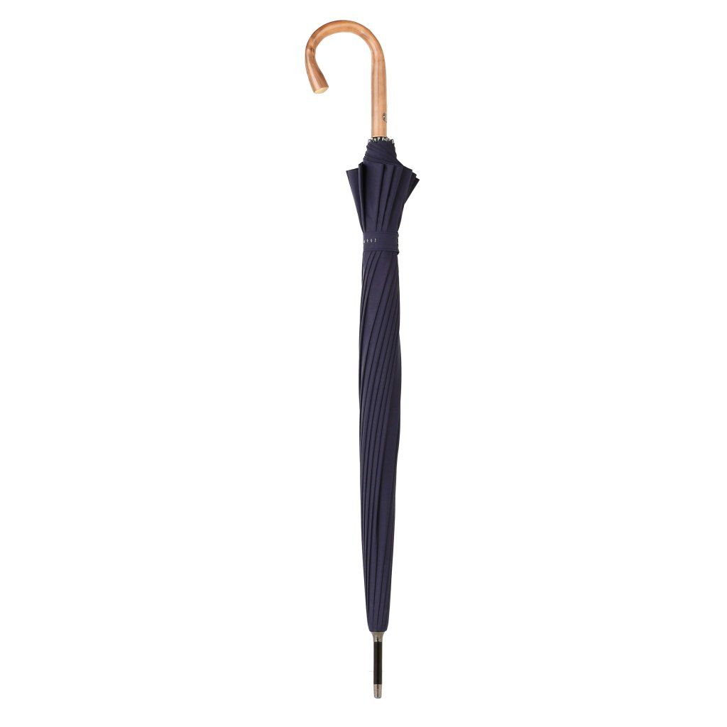 Elegantní pánský holový deštník tmavě modrý od trendy značky bugatti. Konstrukce ze sklolaminátu a dřeva poslední díl ramene ze sklolaminátu zajišťuje pružnost deštníku ve větru. Veliká střecha. Polyesterový potah je odolný proti změnám vlhkosti a teplot, nesráží se.