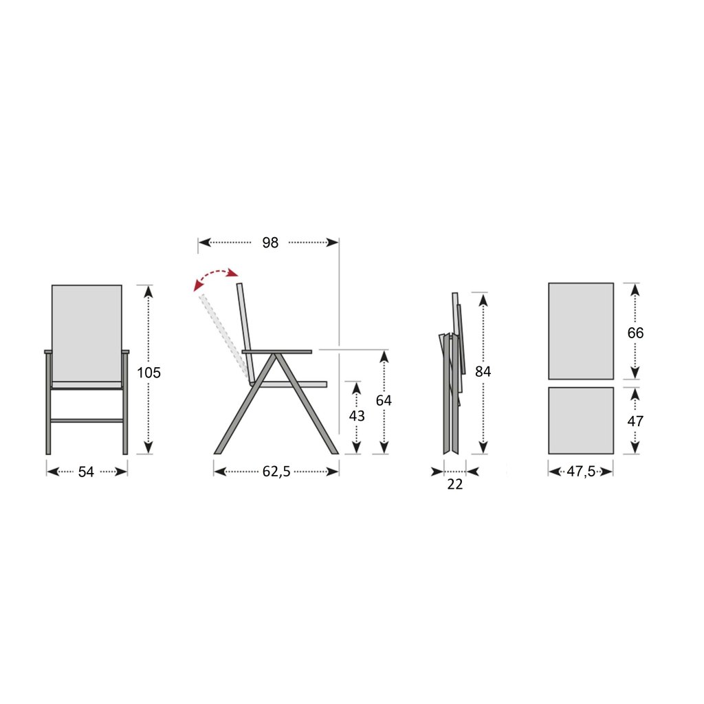 | Vlastnosti a funkce: | Nábytek odolný povětrnostním vlivům, Polohovatelné, rozložitelná židle, křeslo |