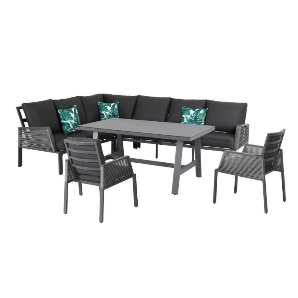 Představujeme vám zahradní soupravu Elba – dokonalou kombinaci elegance a pohodlí, která promění vaši zahradu nebo terasu v oázu klidu. Tato 5-dílná sestava je navržena tak, aby odolala času i povětrnostním vlivům, což zajišťuje její stabilní hliníková konstrukce v moderní antracitové barvě.
