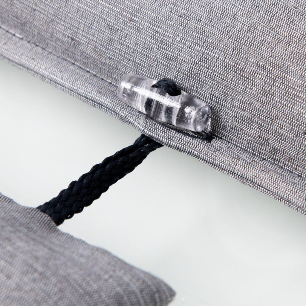 Polstr na zahradní lehátko řady ELEGANT je v provedení s obšitým lemem. Uchycení je pomocí posuvné spony. Díky sponě si můžete nastavit velikost dle rozměru a druhu židle, spona je pevná a nevytahuje se. Upevnění sedáku je pomocí dvou tkaniček v ohybu polstru. Polstr je v provedení se zipem, potah je snímatelný a je možnost ručního praní.