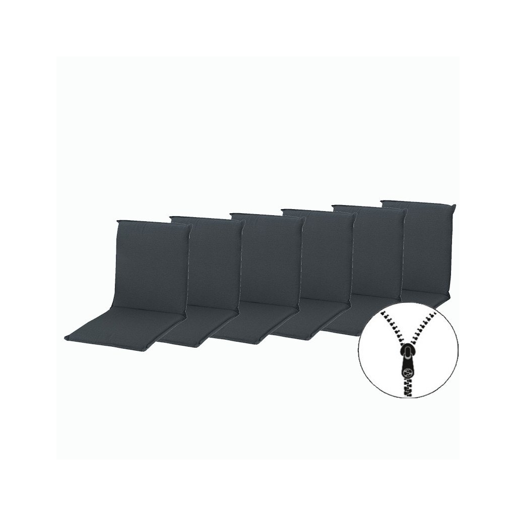 Polstry s nízkou opěrkou na zahradní nábytek řady ELEGANT jsou v provedení s obšitým lemem. Uchycení je pomocí posuvné spony. Díky sponě si můžete nastavit velikost dle rozměru a druhu židle, spona je pevná a nevytahuje se. Upevnění sedáku je pomocí dvou tkaniček v ohybu polstru. Síla polstru je optimální pro všechny druhy židlí. Provedení je vhodné i do náročných podmínek kaváren, zahrádek a restaurací. Polstry jsou v provedení se zipem, potah je snímatelný a je ho možno prát.