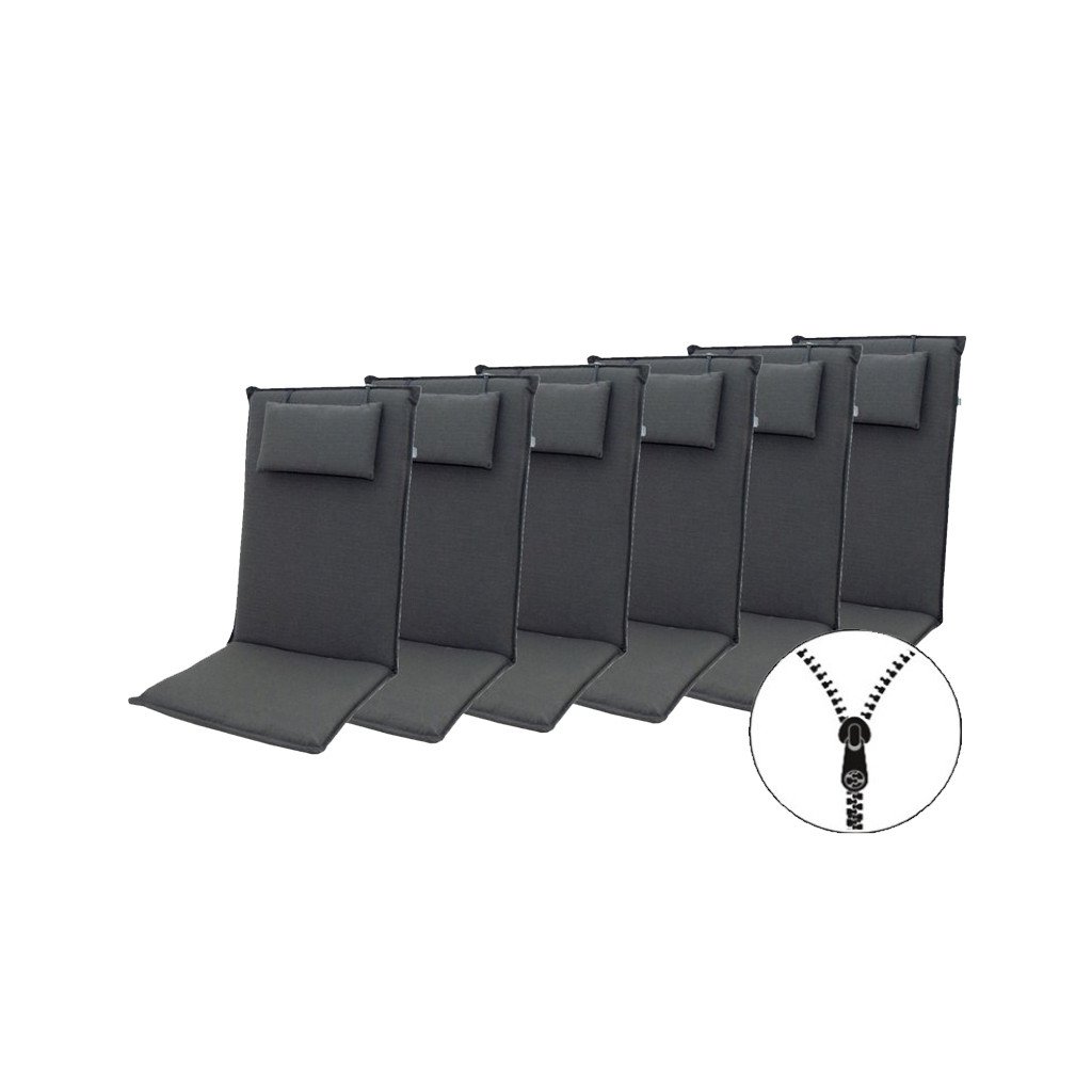 Polstry s vysokou opěrkou na zahradní nábytek řady ELEGANT jsou v provedení s obšitým lemem. Uchycení je pomocí posuvné spony. Díky sponě si můžete nastavit velikost dle rozměru a druhu židle, spona je pevná a nevytahuje se. Upevnění sedáku je pomocí dvou tkaniček v ohybu polstru. Síla polstru je optimální pro všechny druhy židlí. Provedení je vhodné i do náročných podmínek kaváren, zahrádek a restaurací. Polstry jsou v provedení se zipem, potah je snímatelný a je ho možno prát.