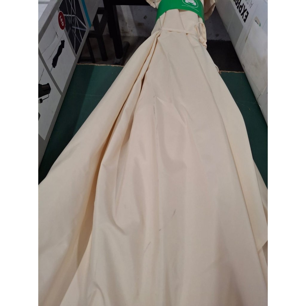 Důvod 2. jakosti: Slunečník má mírně podřenou konstrukci. Potah je místy špinavý. Plně funkční. Slunečník s kličkou má kvalitní hliníkovou konstrukci a funkci automatického naklápěcího kloubu. Lze výškově nastavit. Potah je vyroben z 100% polyesterové tkaniny odolné povětrnostním vlivům s dobrou UV ochranou 80+.
