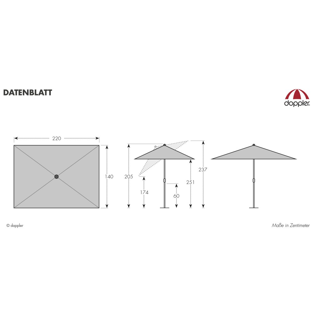 | Vlastnosti a funkce: | Odolný povětrnostním vlivům, Výškově nastavitelný, Otočný kolem osy, Naklápěcí, Snímatelný/ručně pratelný potah slunečníku, Automatické otevírání klikou |