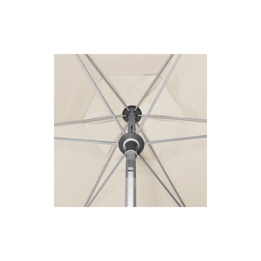 Tento moderní, lehký, stabilní slunečník je ideálním společníkem na balkón, terasu nebo zahradu. Slunečník má kvalitní hliníkovou konstrukci a funkci automatického naklápěcího kloubu. Kromě toho lze výškově nastavit. Potah je vyroben z 100% polyesterové tkaniny odolné povětrnostním vlivům s vynikající UV ochranou 80+. Má snímatelný potah pro ruční praní. Díky ventilačnímu otvoru ve střeše se pod slunečníkem nekumuluje horký letní vzduch.