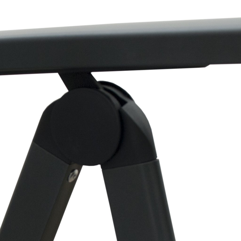 Soupravu doplňuje pevný hliníkový stůl o rozměrech 150 × 90 cm s černou práškovou povrchovou úpravou. Deska je žebrovaná a konstrukce vybavená regulačními kolečky pro snadné vyrovnání na nerovném povrchu. Stůl je nejen stabilní a odolný vůči povětrnostním vlivům, ale i zcela bezúdržbový.