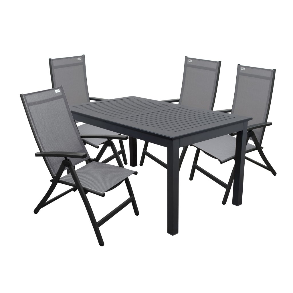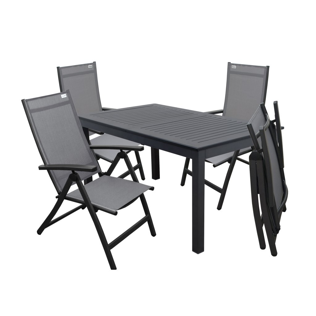 Zahradní souprava EXPERT ACTIVE šedé 4+1 je ideální volbou pro menší terasy, balkony i zahrady. Obsahuje čtyři polohovací křesla s lehkou, ale stabilní hliníkovou konstrukcí v antracitové barvě a výpletem z šedé umělé textilie. Díky 7stupňovému polohovacímu systému si můžete snadno přizpůsobit opěrku zad pro maximální pohodlí. Křesla jsou skládací, což výrazně usnadňuje jejich skladování mimo sezónu.