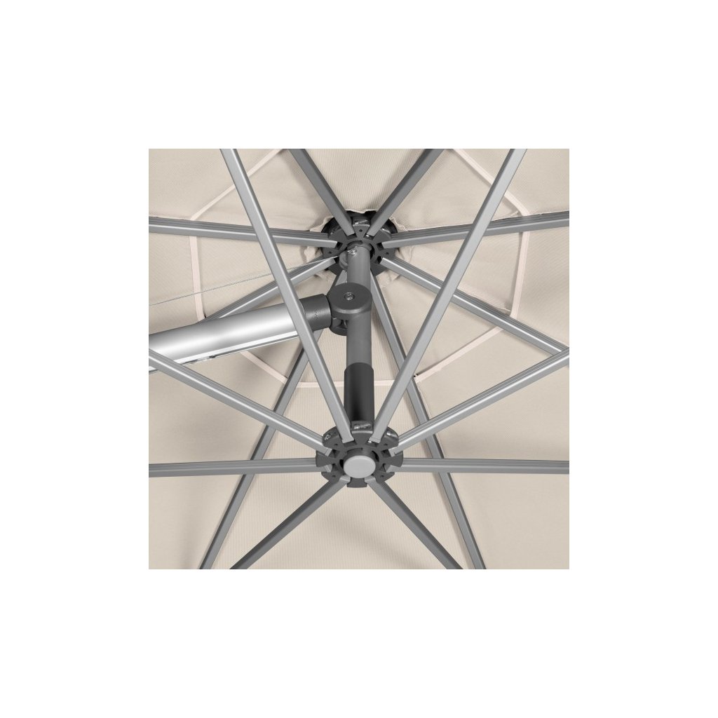 Slunečník je otočný o 360 ° a disponuje bočním naklápěním, takže jej můžete snadno přizpůsobit pohybu slunce. Dlouhodobě bezproblémový provoz při otevírání a zavírání slunečníku zajišťuje nově vyvinutý ozubený hnací řemen a kvalitní evropská výroba.