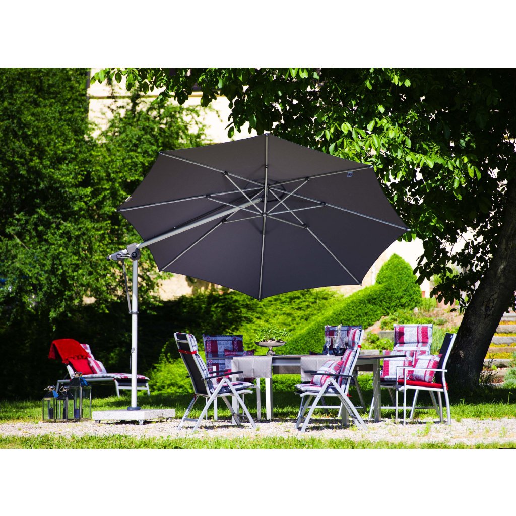 Slunečník je otočný o 360° a disponuje bočním naklápěním, takže jej můžete snadno přizpůsobit pohybu slunce. Dlouhodobě bezproblémový provoz při otevírání a zavírání slunečníku zajišťuje nově vyvinutý ozubený hnací řemen a kvalitní evropská výroba.