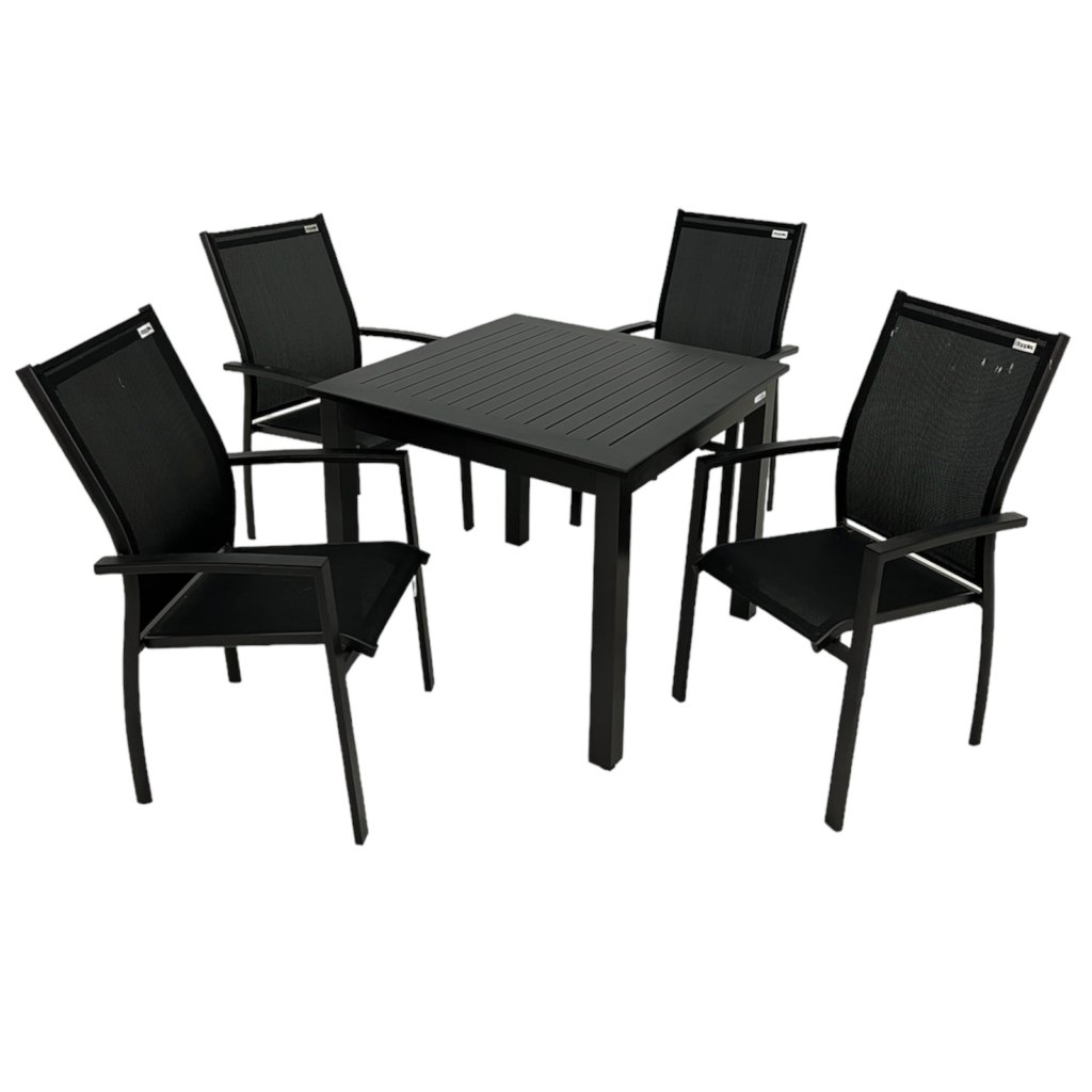 Skládá se z: 4x stohovací židle, 1x stůl 90 x 90 cm