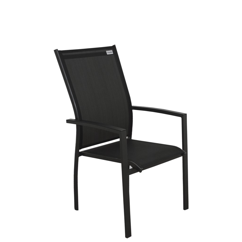Sestava obsahuje 4 polohovací křesla z pevné hliníkové konstrukce s výpletem v antracitové barvě. Každé křeslo má 7stupňový polohovací systém opěrky. Díky jednoduchému designu lze křeslo snadno rozložit i složit. Během skladování Vám složená křesla zaberou minimum skladovací plochy.