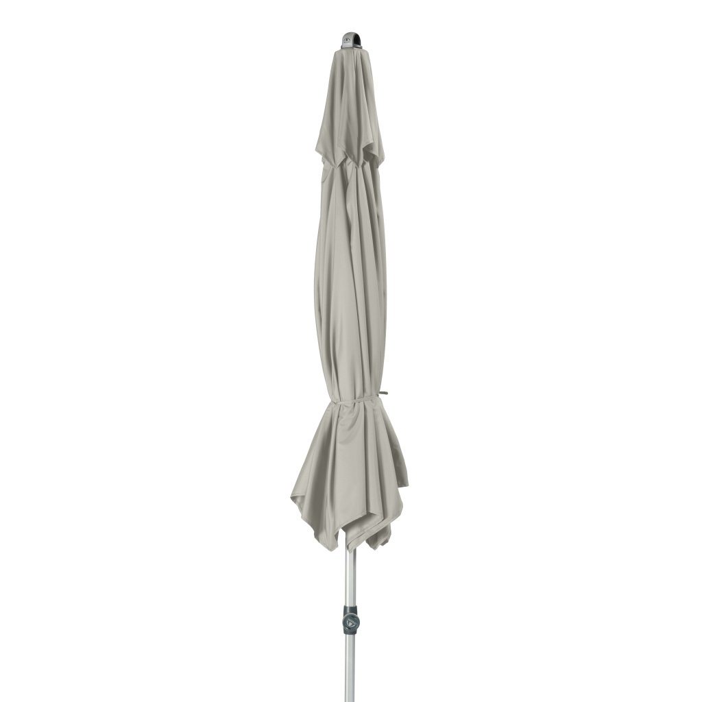 Tento moderní, lehký, stabilní slunečník je ideálním společníkem na balkón, terasu nebo zahradu. Slunečník má kvalitní hliníkovou konstrukci a funkci automatického naklápěcího kloubu. Kromě toho lze výškově nastavit. Potah je vyroben z 100% polyesterové tkaniny odolné povětrnostním vlivům s vynikající UV ochranou 80+. Má snímatelný potah pro ruční praní. Díky ventilačnímu otvoru ve střeše se pod slunečníkem nekumuluje horký letní vzduch.