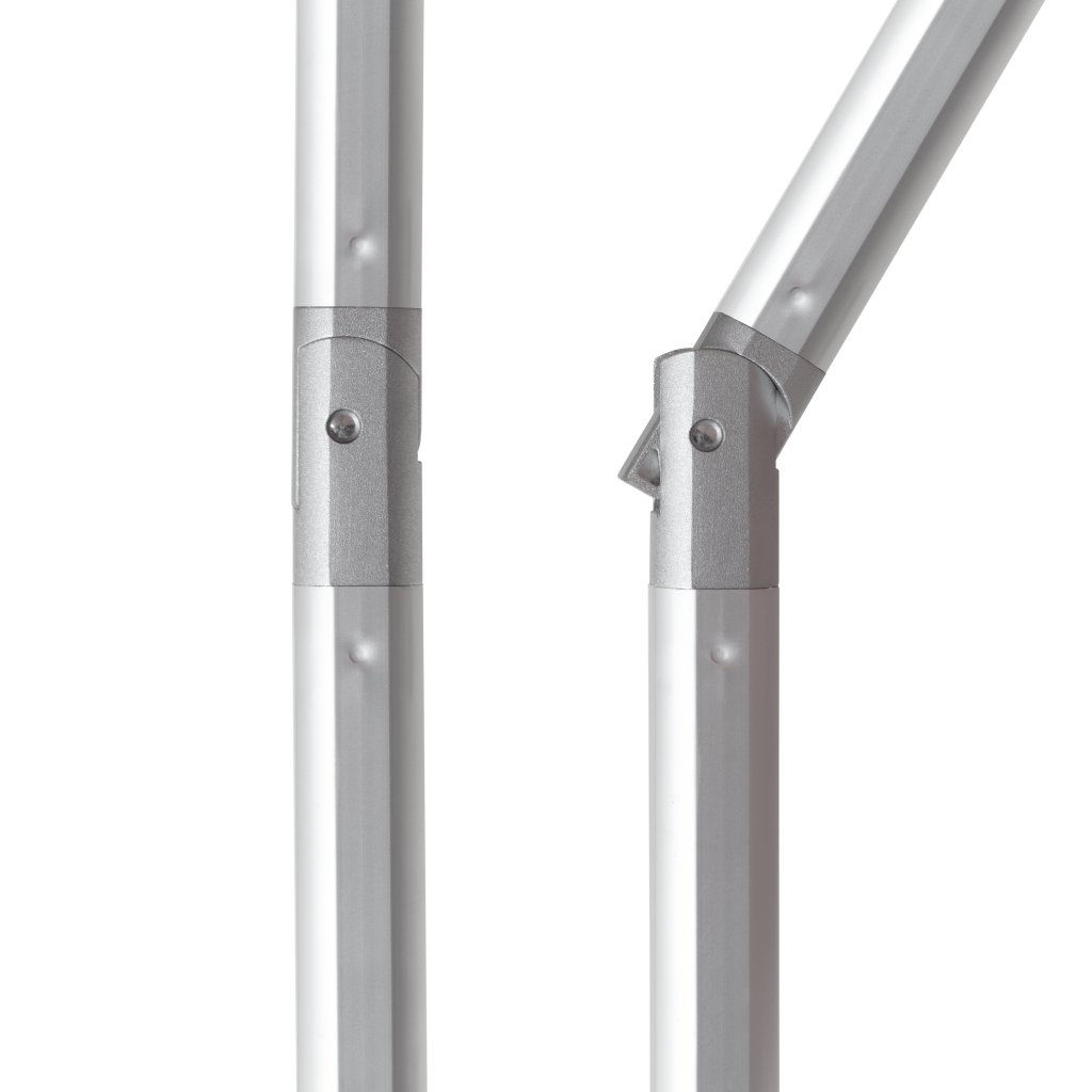 Tento moderní, lehký, stabilní slunečník je ideálním společníkem na balkón, terasu, nebo zahradu. Slunečník má kvalitní hliníkovou konstrukci a funkci automatického naklápěcího kloubu. Lze výškově nastavit. Potah je vyroben z 100% polyesterové tkaniny odolné povětrnostním vlivům s vynikající UV ochranou 80+. Má snímatelný potah pro ruční praní. Díky ventilačnímu otvoru ve střeše se pod slunečníkem nekumuluje horký letní vzduch.