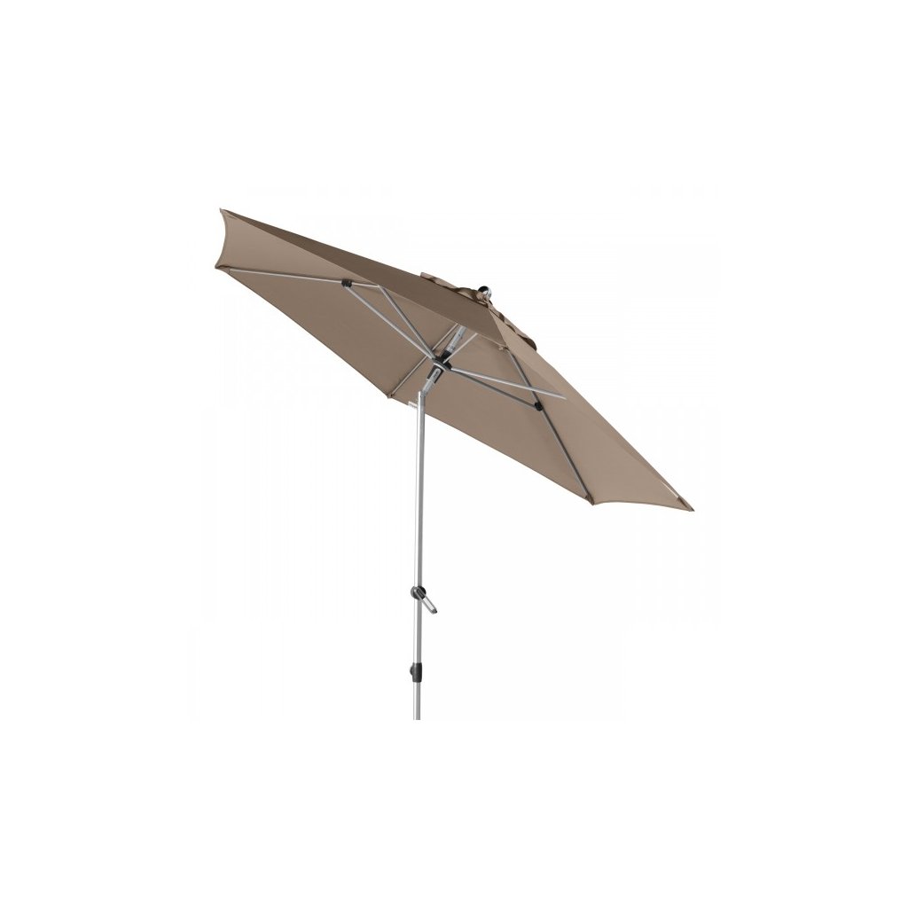 Tento moderní, lehký, stabilní slunečník je ideálním společníkem na balkón, terasu, nebo zahradu. Slunečník má kvalitní hliníkovou konstrukci a funkci automatického naklápěcího kloubu. Lze výškově nastavit. Potah je vyroben z 100% polyesterové tkaniny odolné povětrnostním vlivům s vynikající UV ochranou 80+. Má snímatelný potah pro ruční praní. Díky ventilačnímu otvoru ve střeše se pod slunečníkem nekumuluje horký letní vzduch.