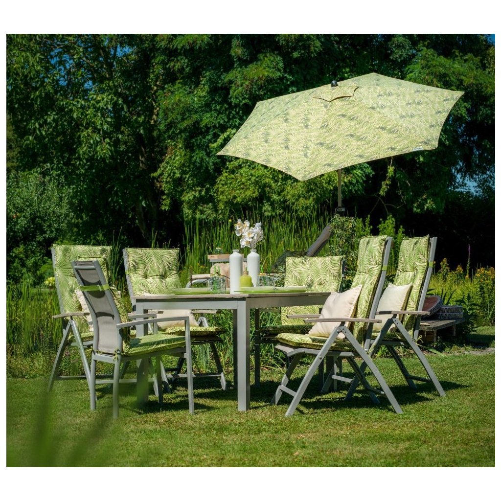 K soupravě patří šest polohovacích křesel s 7stupňovým nastavením opěrky, která se snadno skládají a rozkládají. Při uskladnění zabírají minimum místa, což oceníte zejména mimo sezónu. Ergonomický tvar sedáku a područek zajišťuje maximální pohodlí i při delším posezení.