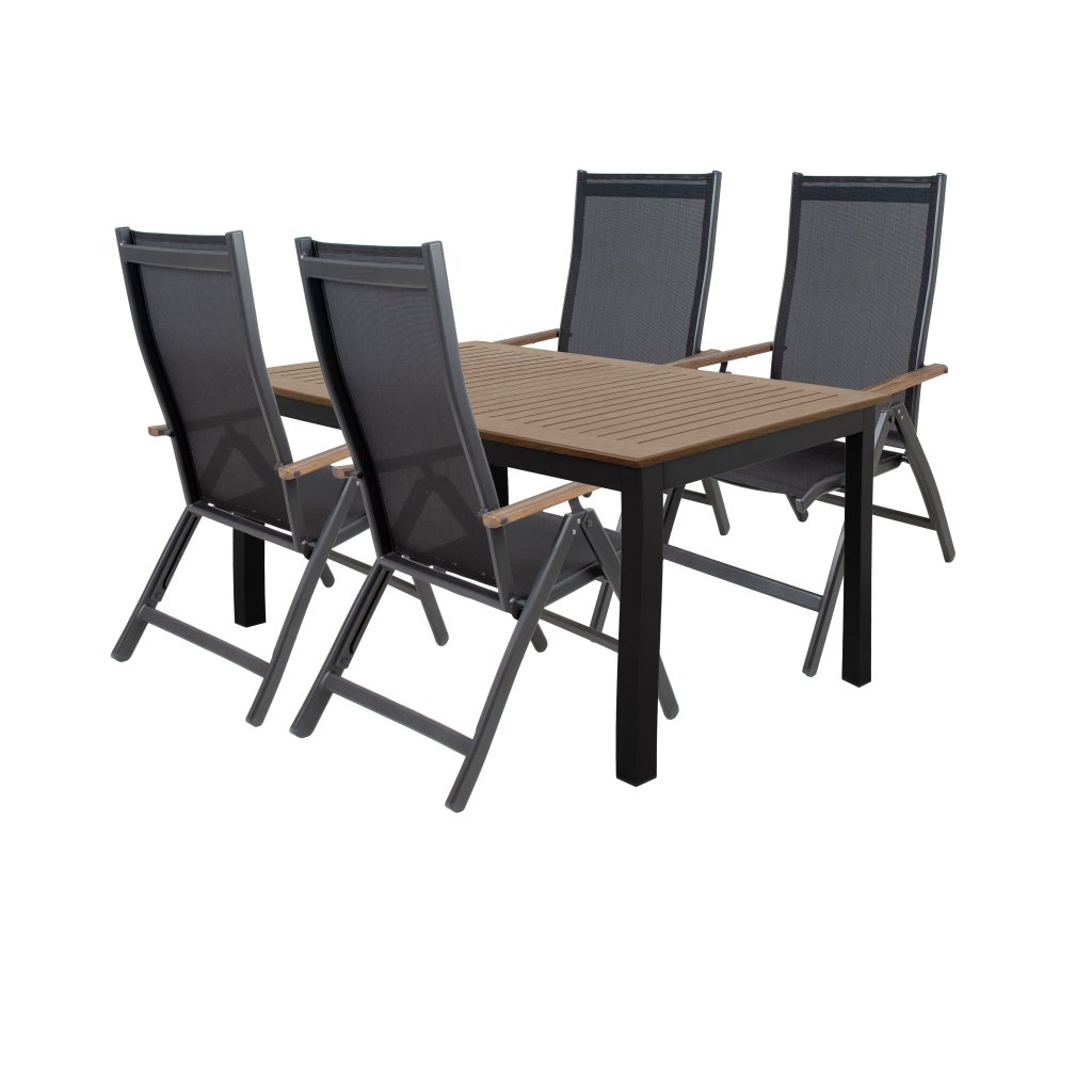 Skládá se z: 4x polohovací židle, 1x stůl 150 x 90 cm