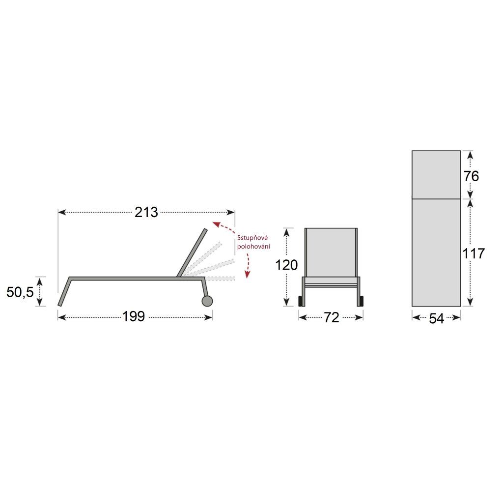 | Vlastnosti a funkce: | Nábytek odolný povětrnostním vlivům, Bezúdržbové, Relaxační, Polohovatelné |