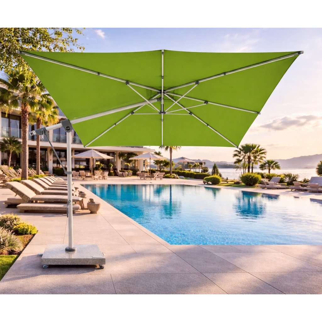 Tento multifunkční slunečník lze optimálně přizpůsobit poloze slunce díky své schopnosti o 360° a oboustrannému bočnímu naklápění střechy. Konstrukce je vyrobena z vysoce jakostního hliníku a všechny díly jsou šroubované. Slunečník má nově vyvinutý ozubený hnací řemen, ten zajišťuje dlouhotrvající a bezproblémový provoz při otevírání a zavírání slunečníku.