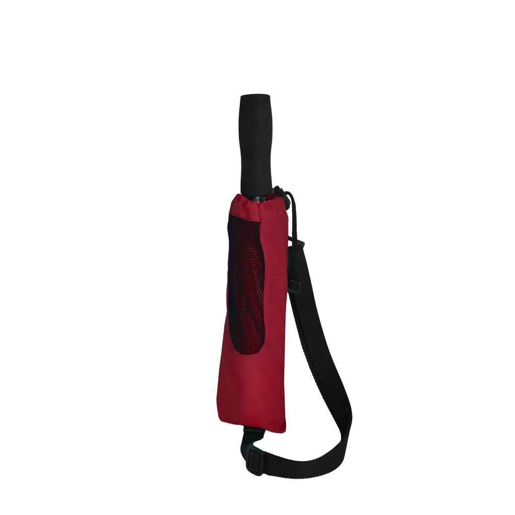 Partnerský skládací deštník červený. Velice kvalitní konstrukce ze sklolaminátu, hliníku a oceli. Poslední dva díly ze sklolaminátu, při převrácení deštníku větrem nedojde k jeho poškození, deštník se snadno překlopí zpět do původní polohy. Veliká střecha. Polyesterový potah je odolný změnám vlhkosti a teplot, nesráží se.