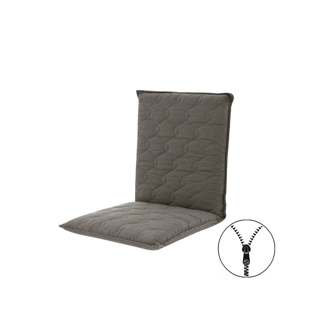 Polstr s nízkou opěrkou na zahradní nábytek řady FUSION je v provedení s obšitým lemem. Exkluzivní motiv - prošití celé plochy polstru. Uchycení je pomocí posuvné spony. Díky sponě si můžete nastavit velikost dle rozměru a druhu židle, spona je pevná a nevytahuje se. Upevnění sedáku je pomocí dvou tkaniček v ohybu polstru. Síla polstru je optimální pro všechny druhy židlí. Provedení je vhodné i do náročných podmínek kaváren, zahrádek a restaurací. Polstr je v provedení se zipem, potah je snímatelný a je možnost ručního praní.