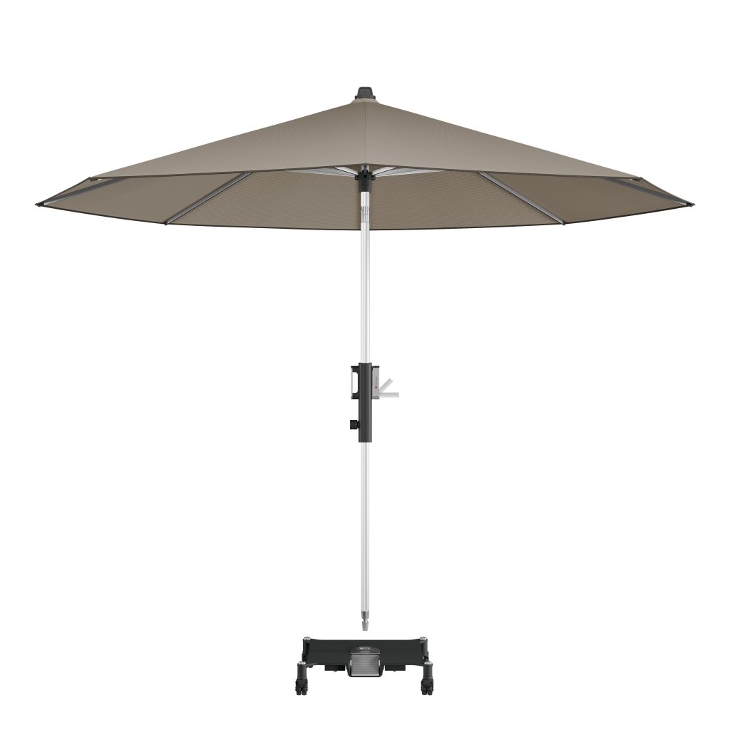 Luxusní zahradní slunečník od prémiové značky Knirps je výškově nastavitelný až o 15 cm a vybavený klikovým mechanismem umožňujícím snadné naklápění. Má lehkou a pevnou hliníkovou konstrukci a kvalitní potah ze PET recyklované polyesterové s vysokou ochranou před UV zářením SPF 80. Hliníkovou konstrukci lze snadno uzamknout do odpovídajícího stojanu - bez ohýbání nebo šroubování.